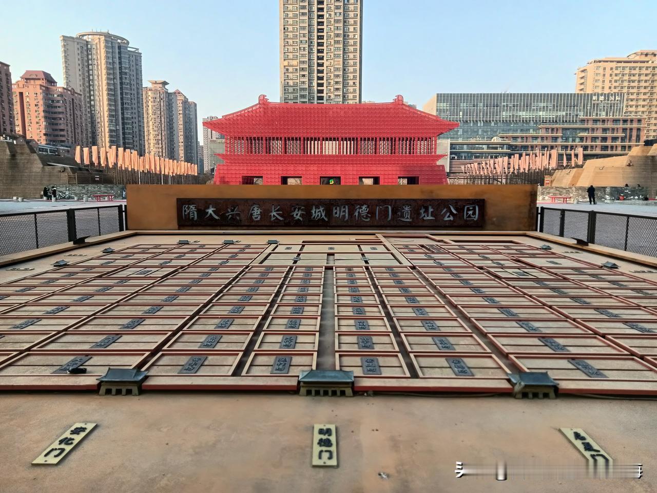 记录我的2026好长时间没去木塔寺了,趁着天气放晴,下午到位于高新区的木塔寺公园遛遛!隋唐年间的木塔寺如今只存有修缮后的古刹遗址,在昔日古老寺院的地基上绿化改造成了现代化高层民居紧密环抱的生活区!就是不知道周边居民们还能否聆听到千年古寺里报时的晨钟和暮鼓?从木塔寺南广场出来再转车往东去了同样是唐代城址的“明德门”,从门前大广场的沙盘模型可见当年明德门是唐长安城的正南门,门庭气宇轩昂,我想当年皇家贵族车马仪仗乃至于有重要影响的历史人物都曾从此门前跟我擦肩而过!有人说用钢制结构拼接组装的红色明德门“不应景”,还不如大明宫前土黄色的丹凤门“绘声绘色”,在我看来,历史已经远去,又何必那么较真呢?木塔寺遗址 冬日生活打卡季