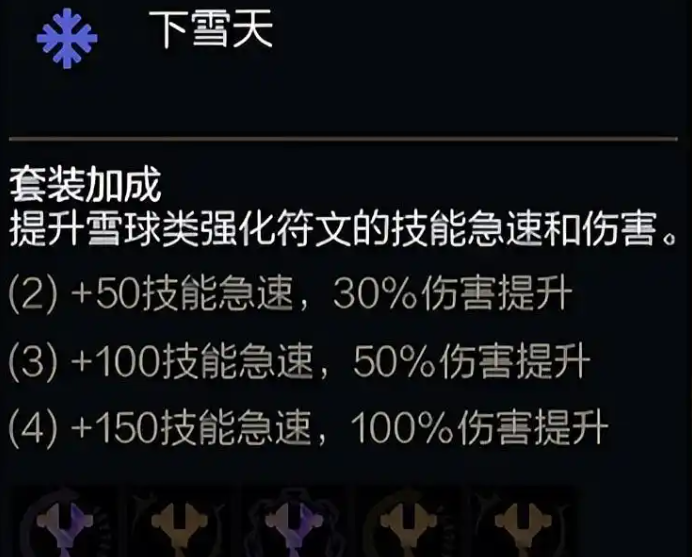 ·弹弹雪球:你的雪球获得50点技能急速,造成额外100-500点真实伤害,且可在墙体上反弹。每次反弹将使雪球体型增大25%,冷却时间缩短10%。该效果将记录雪球总反弹次数。