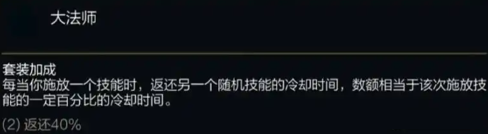 套装加成:每次你施放一个技能时,会以该技能冷却时间的百分比返还另一个随机技能