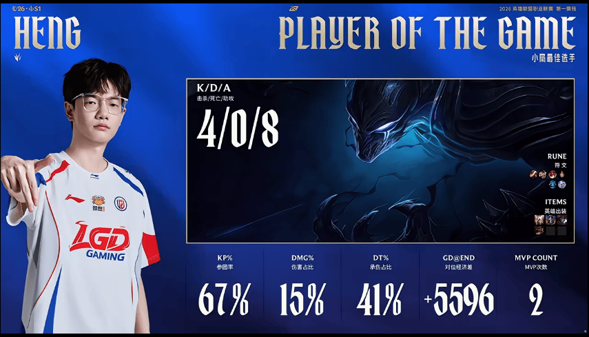 Heng使用梦魇打出4/0/8战绩,斩获LGD对阵OMG第三局MVP