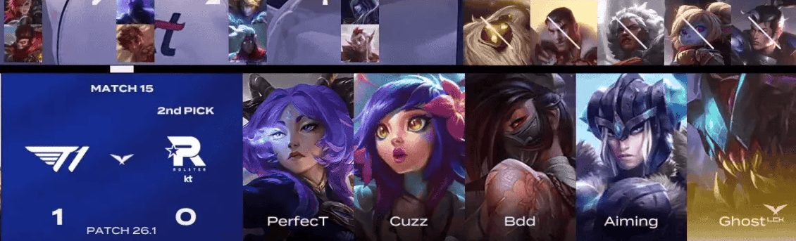 KT选用:PerfecT雷克塞、Cuzz瑟庄妮、Bdd阿卡丽、Aiming芸阿娜、Ghost妮蔻