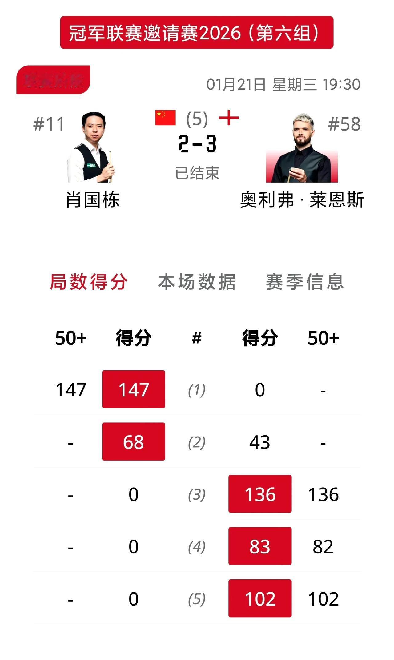 冠军联赛满分147井喷!这冠军联赛邀请赛有点意思,不是排名赛也不是奖金高的赛事,球员之所以愿意来是因为什么?就是因为这是一个纯练手的比赛,中国球员受益明显,肖国栋,吴宜泽,赵心童连续轰出147,比赛输赢不要紧,重要的是刷新数据,就目前来看,满分耗时依旧是奥沙利文遥遥领先,无人可以撼动,看来只有赵心童有机会?