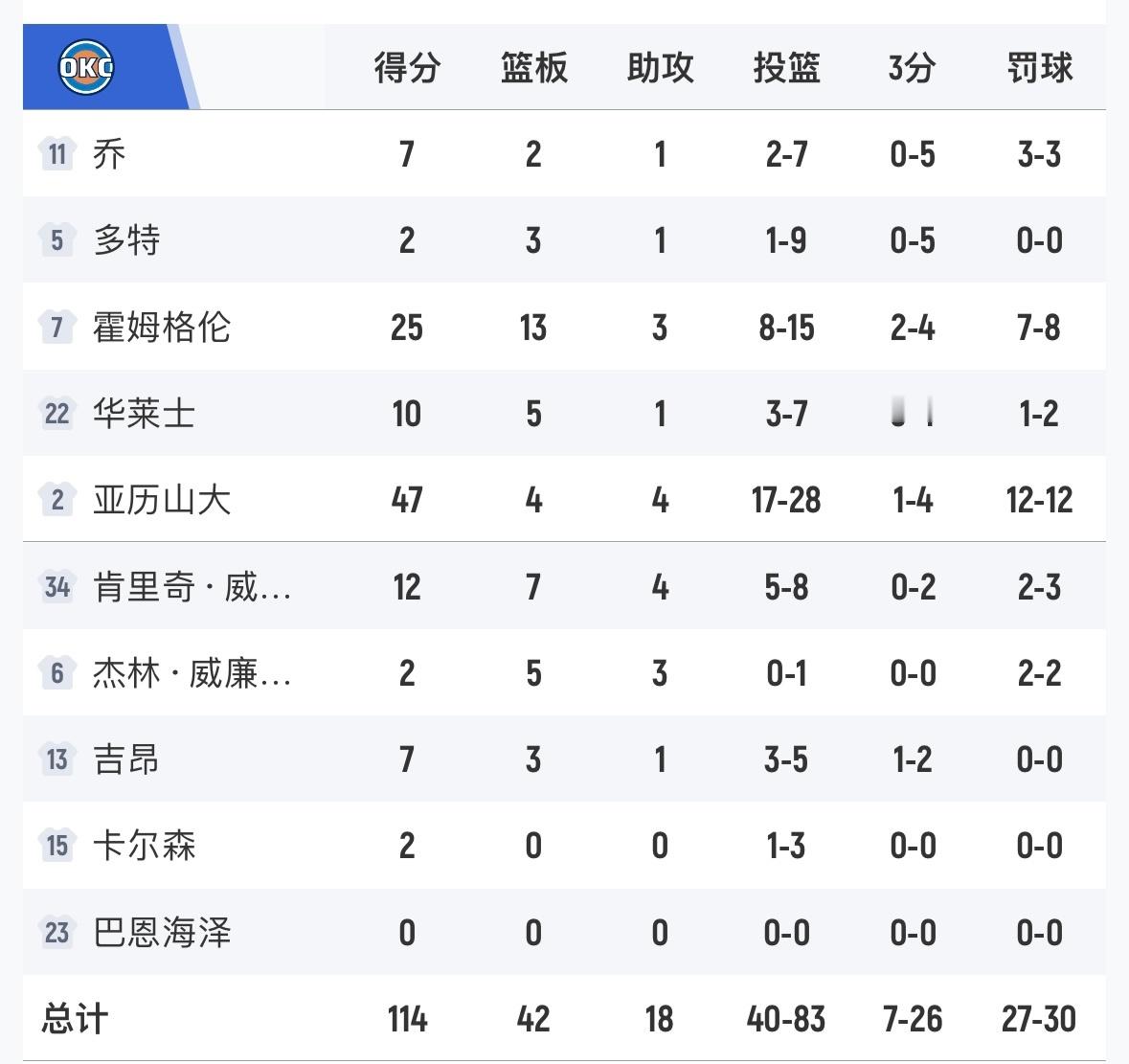 亚历山大空砍47分,步行者送雷霆赛季第9败。