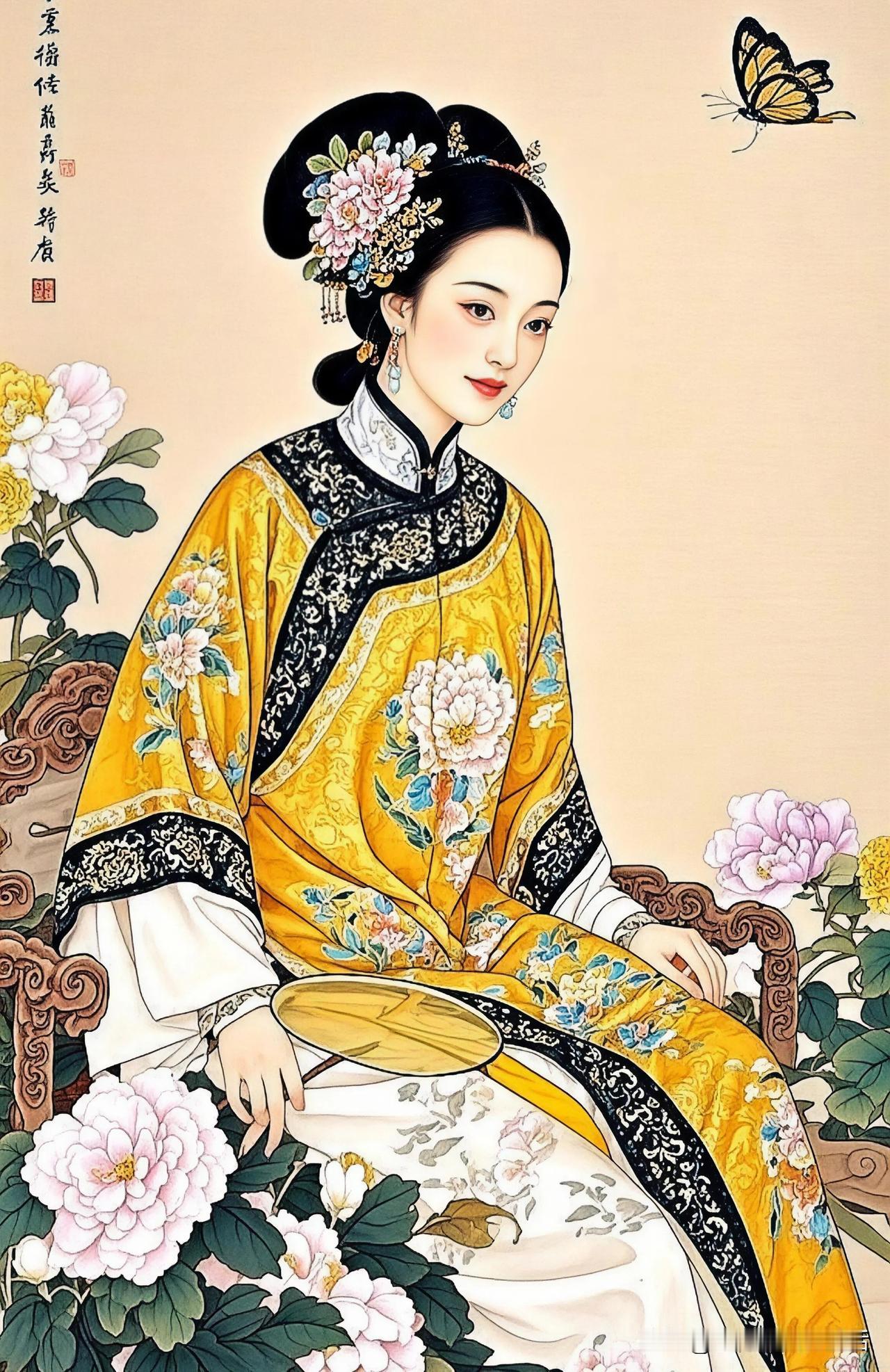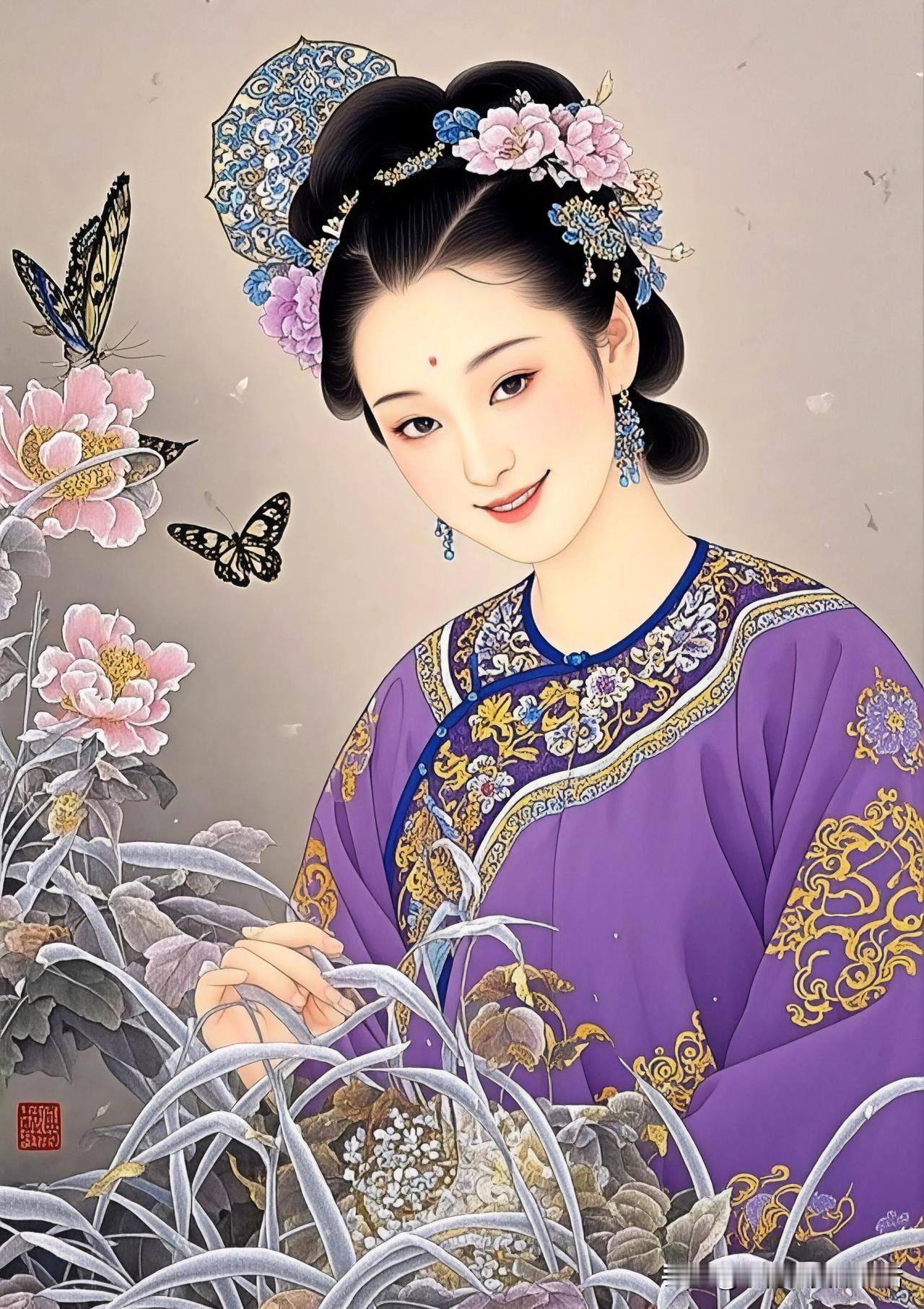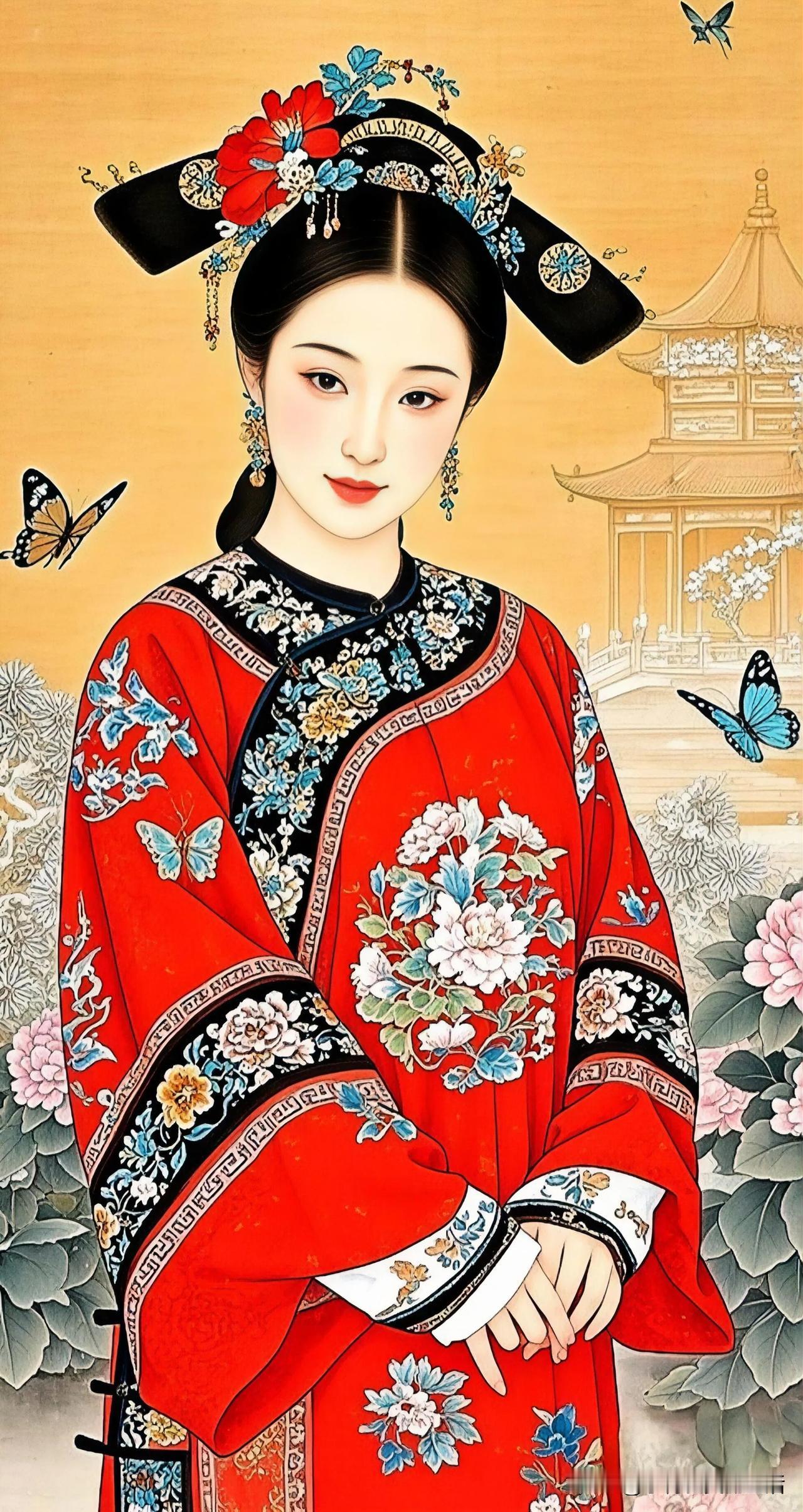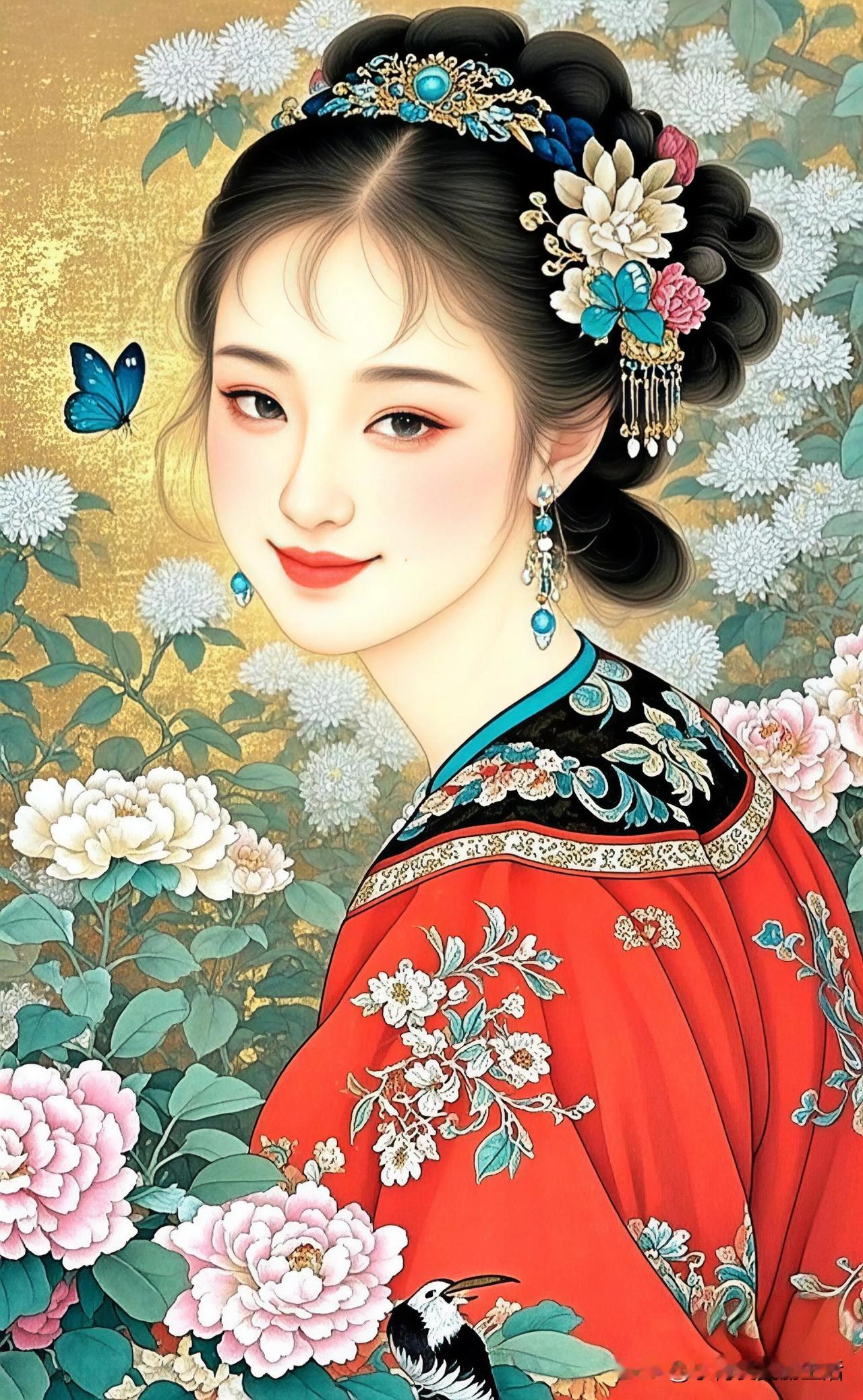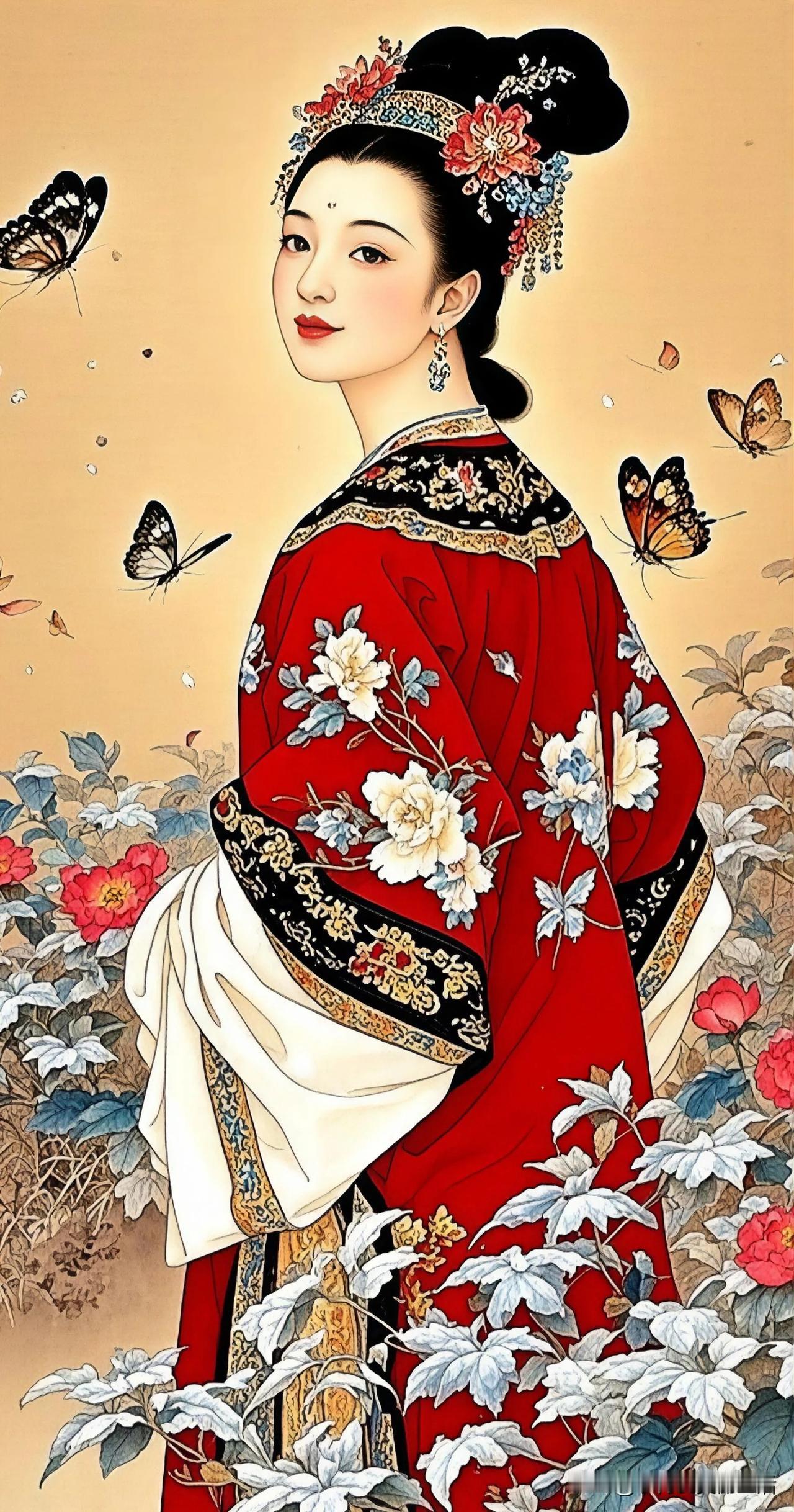 古典美人图鉴:红衣花间舞,蝴蝶翩翩起