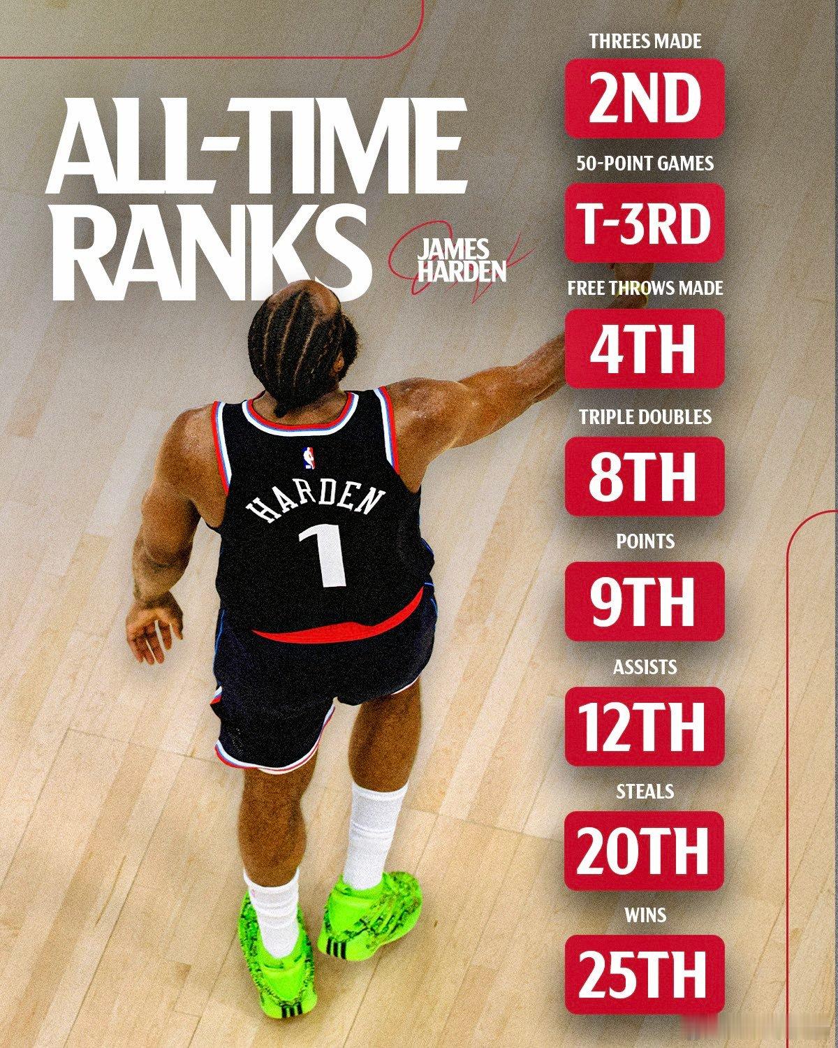 快船官方:詹姆斯·哈登的历史排名简直太疯狂了🤯而且他每天都还在攀登!• 三分命