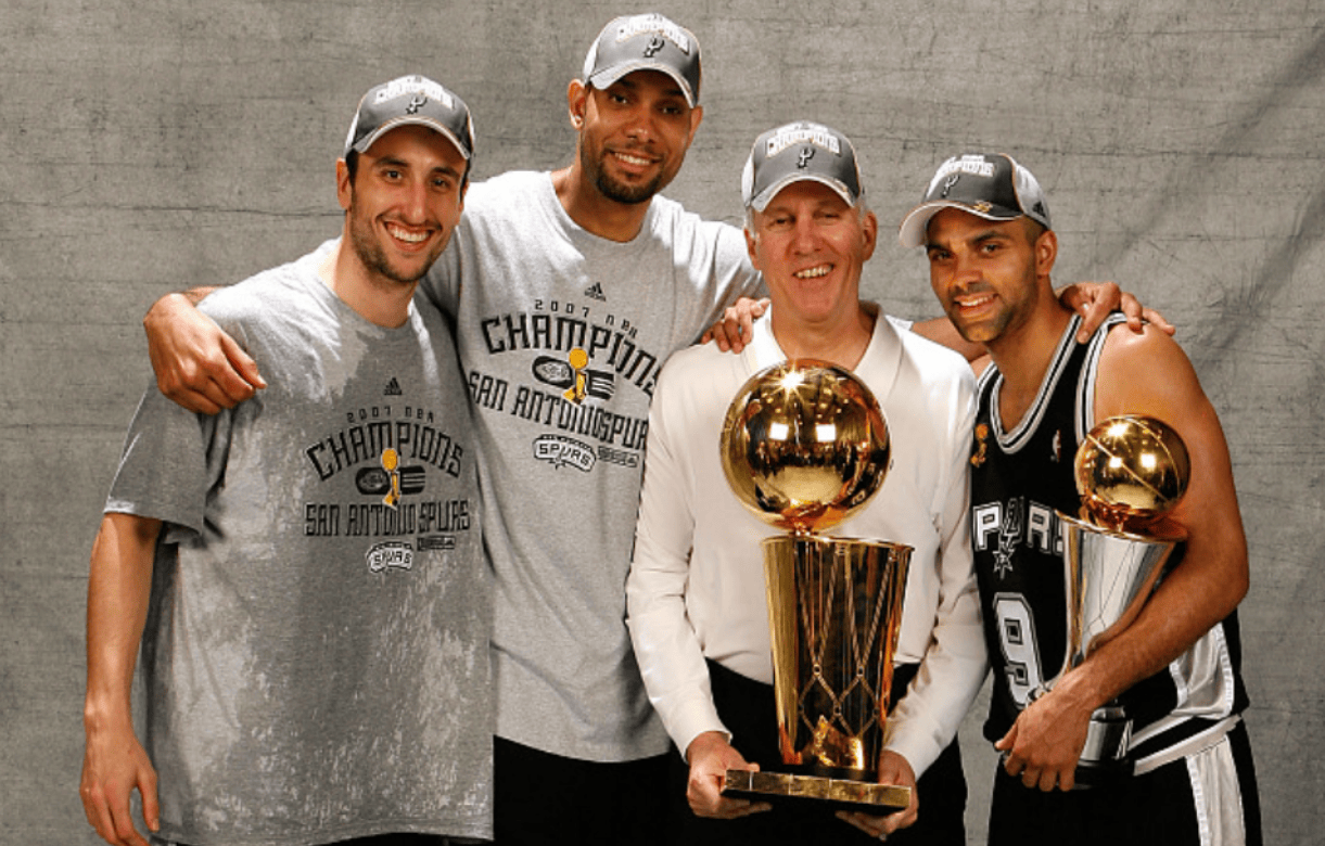 他带领球队五次夺得总冠军,分别是1999年、2003年、2005年、2007年和2014年,还三次当选NBA年度最佳教练。