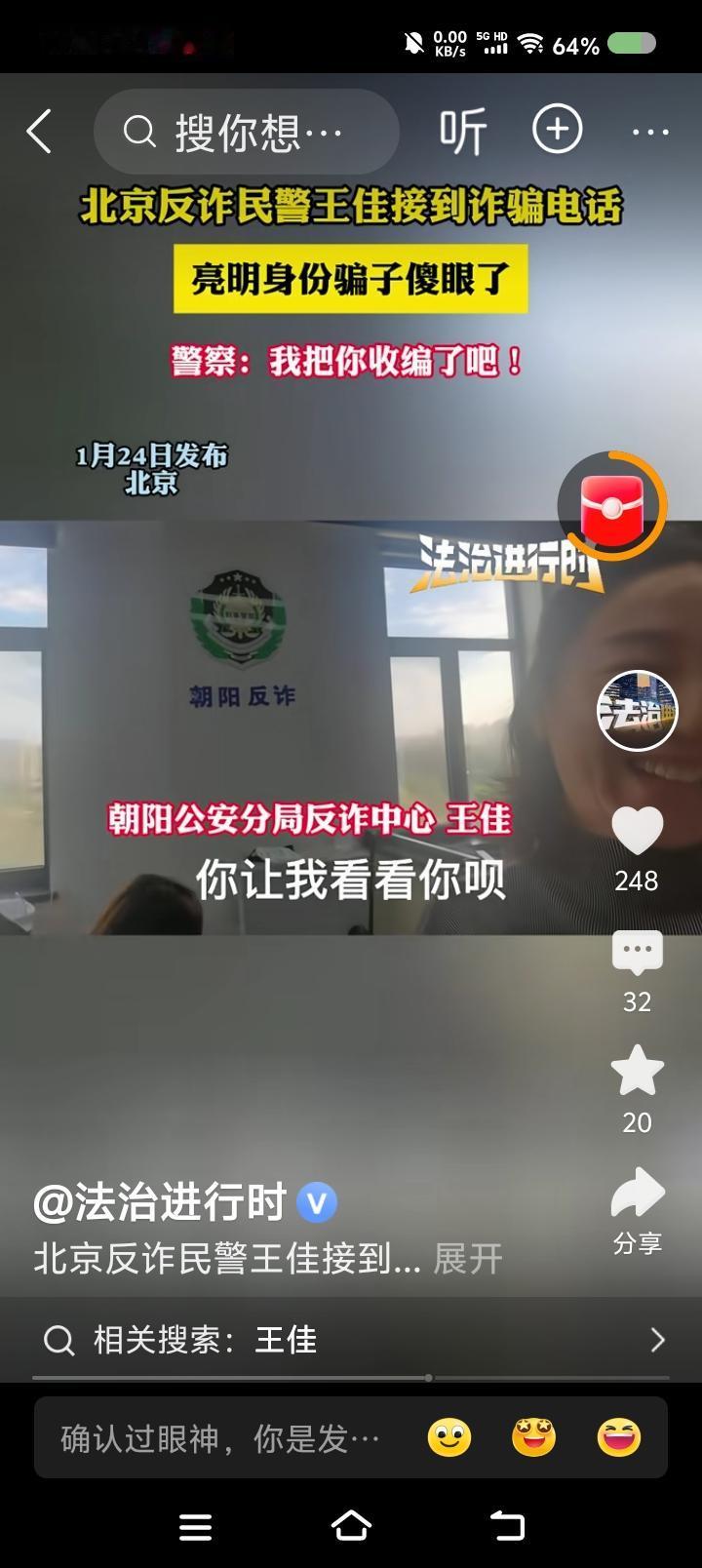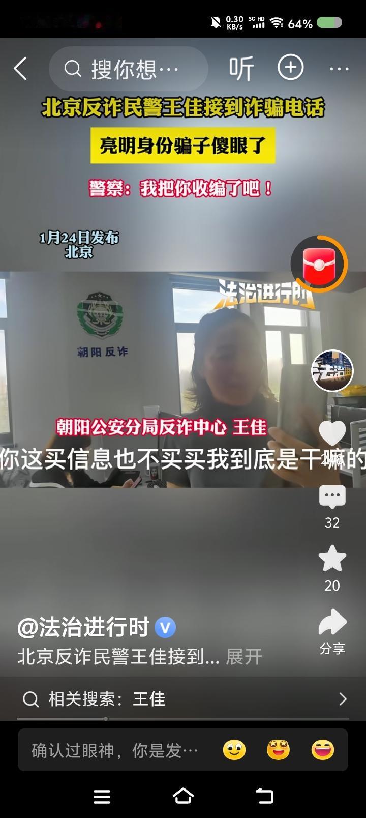 民警还和骗子聊上了?—— 据报道,某地反诈中心的民警接到了骗子的电话,两人聊了一会,“你买信息时没买我是干啥的?太老套了!” “接下来,我们会更新套路。” “什么套路?讲解讲解。” 点评: 如果是为了拖延时间以锁定位置,可以理解。但接电话的民警为什么要暴露身份?似乎还视频了,对方已知险情,还会长时间聊吗?