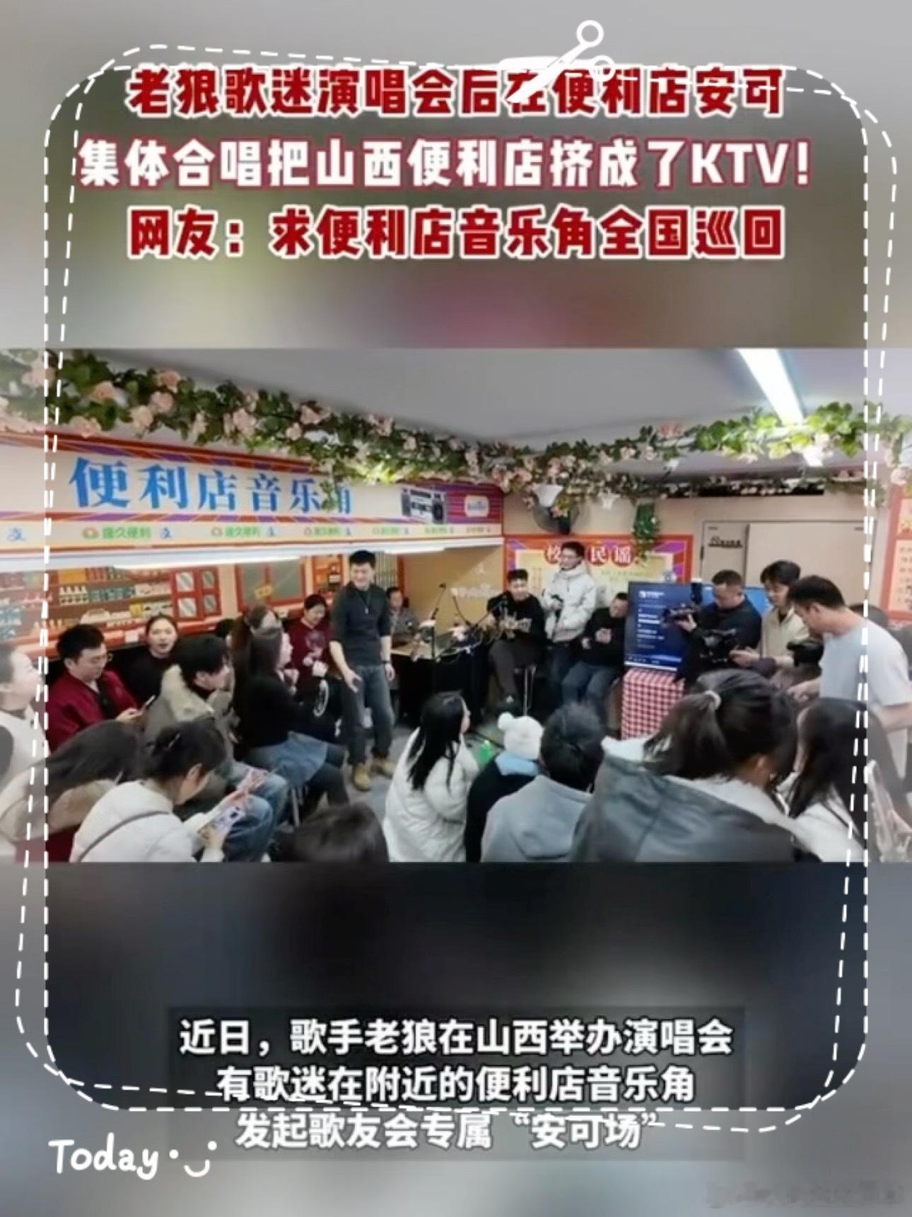 老狼歌迷在山西便利店安可谁的 DNA 动了!老狼太原演唱会散场后,便利店秒变合唱现场。00 后和 60 后一起唱《同桌的你》,路人纷纷驻足加入,这场面真的太有感染力了,这才是演唱会的正确打开方式!老狼歌迷把便利店挤成内场了带着边框一起拍