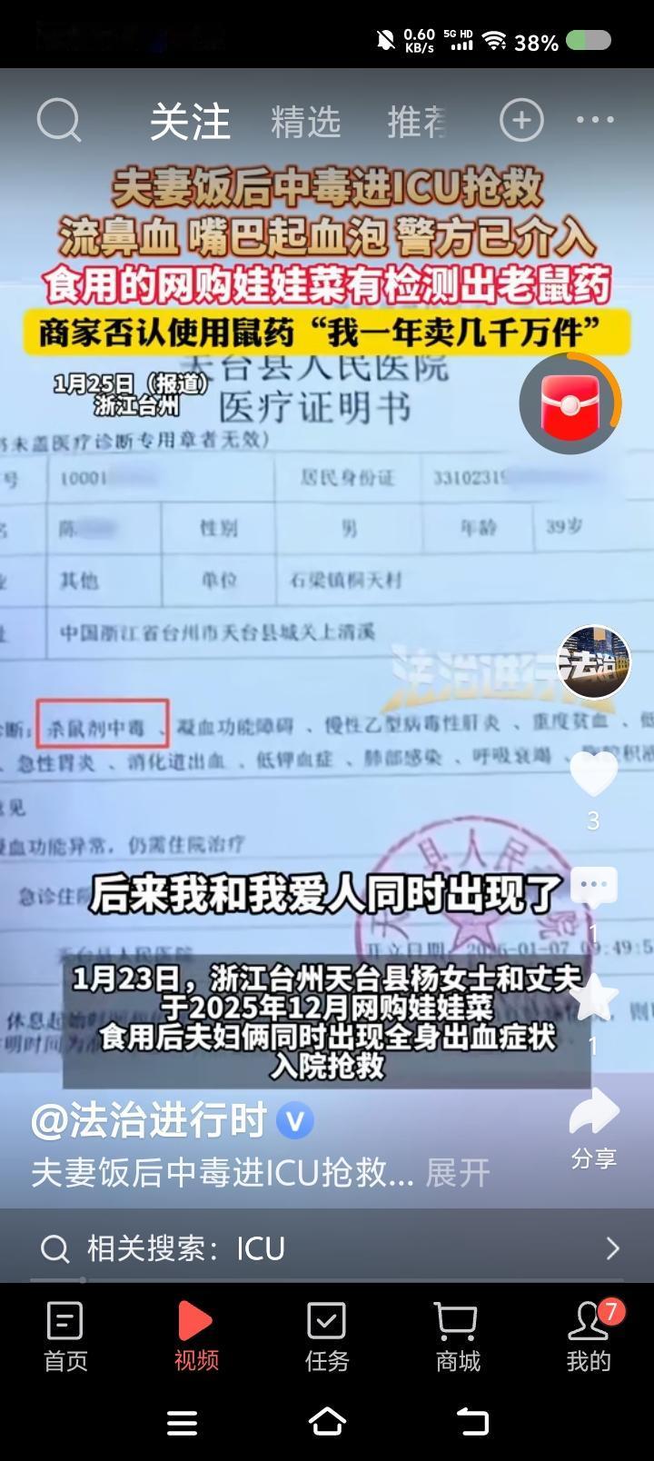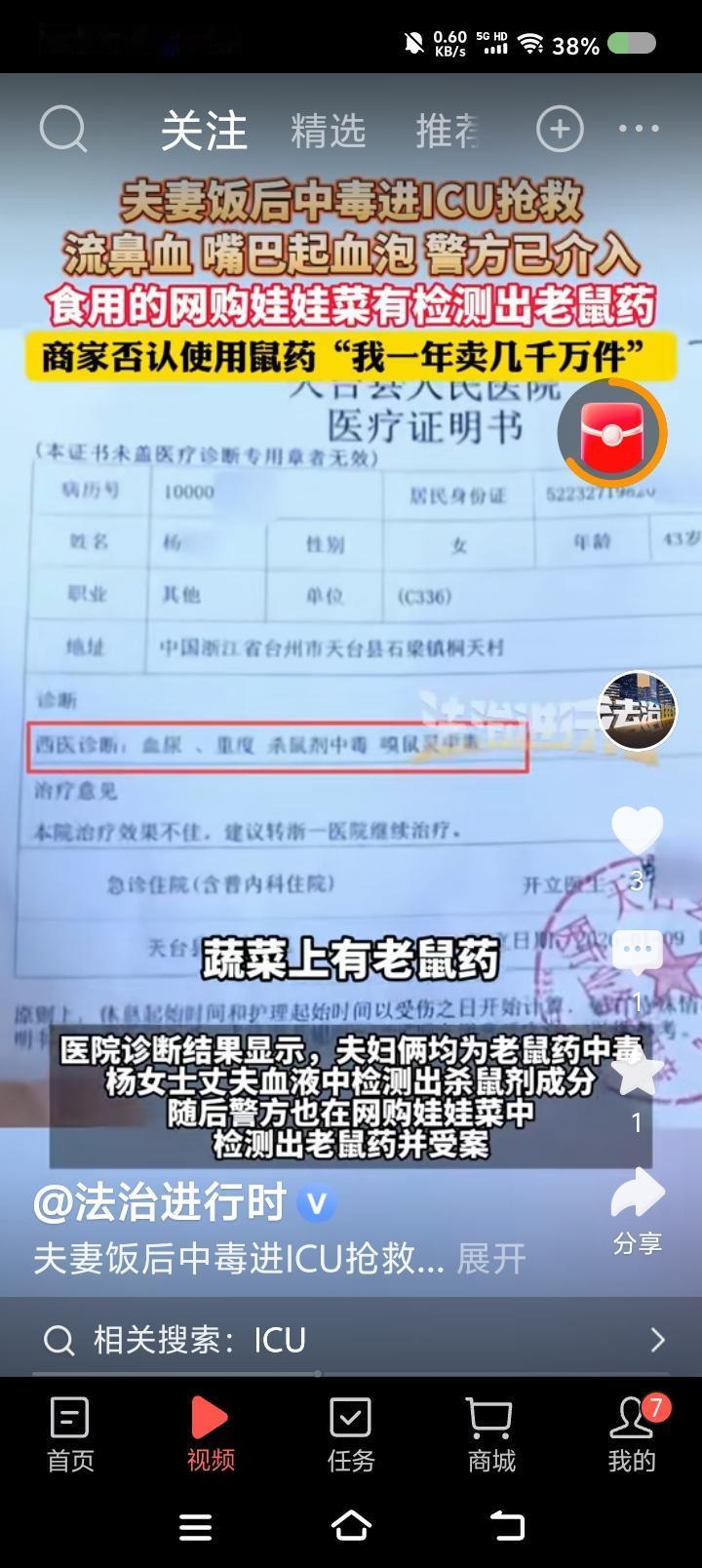 网购蔬菜有毒?—— 据报道,有人网购了娃娃菜,食用后全身出血,住院。经检测,患者血液中、菜中均含有杀鼠剂成分。商家不承认,自称“每年卖出几千万件,怎么会有鼠药?”商家已关闭,下架了所有东西。警方已介入。 点评: 如果证据确凿,商家的态度与做法,是不是对受害者的二次伤害? 为什么消费者合法权益受到侵害,鲜有商家配合调查的?是违法违规成本太低吗? 平日里,顾客是上帝;一出了事,商家“不信教”了?无知无畏了?