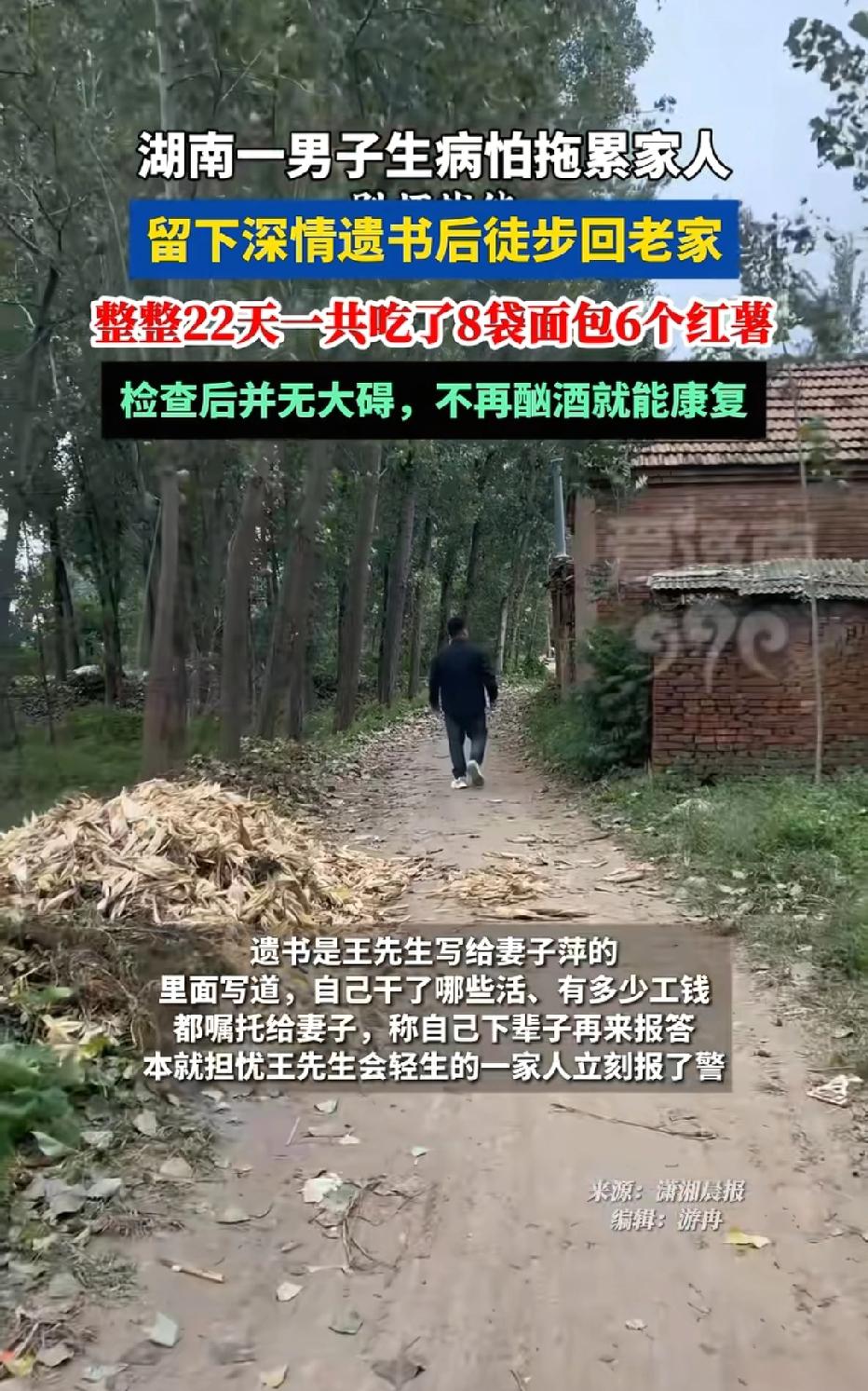 湖南,46岁男子查出肝病,为了不连累家人,他写了一封遗书交代了身后之事,就离家出