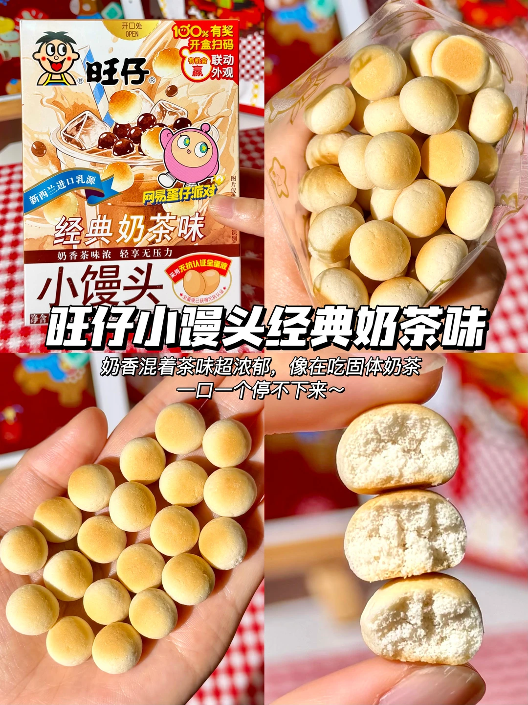 ✅旺仔小馒头经典奶茶味:奶香混着茶味超浓郁,像在吃固体奶茶版,一口一个停不下来~