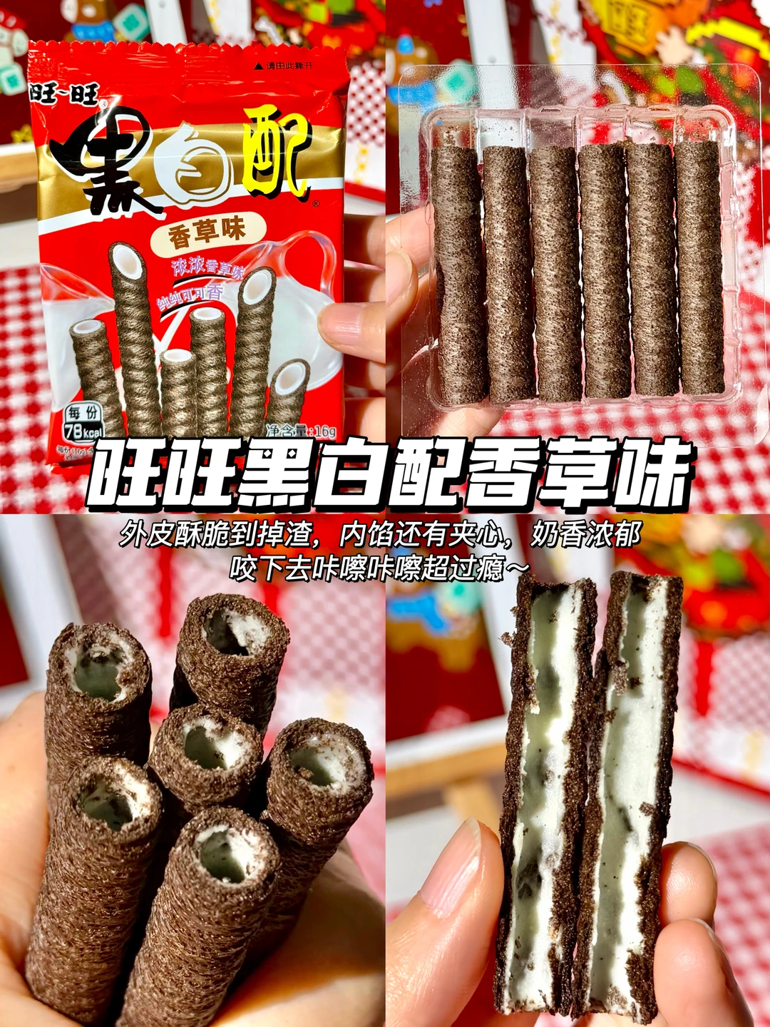 ✅旺旺黑白配香草味:外皮酥脆到掉渣,内馅还有夹心,奶香浓郁,咔嚓咔嚓超过瘾~