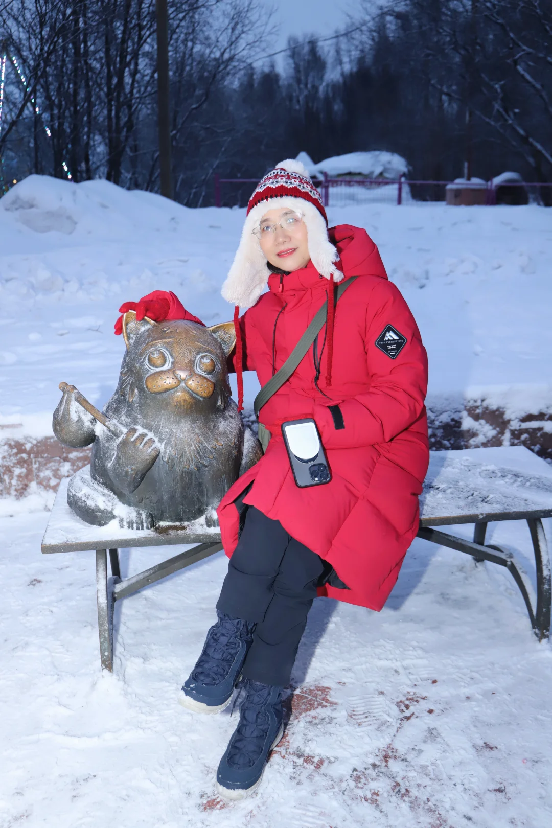 接着去寻那只可爱的谢苗猫,这只刻在城市角落的猫咪雕塑,带着几分俏皮与治愈,仿佛在守护着这座寒冷却温暖的城市。随后漫步至水上救世主教堂,蓝白相间的建筑在冰雪中格外清新。