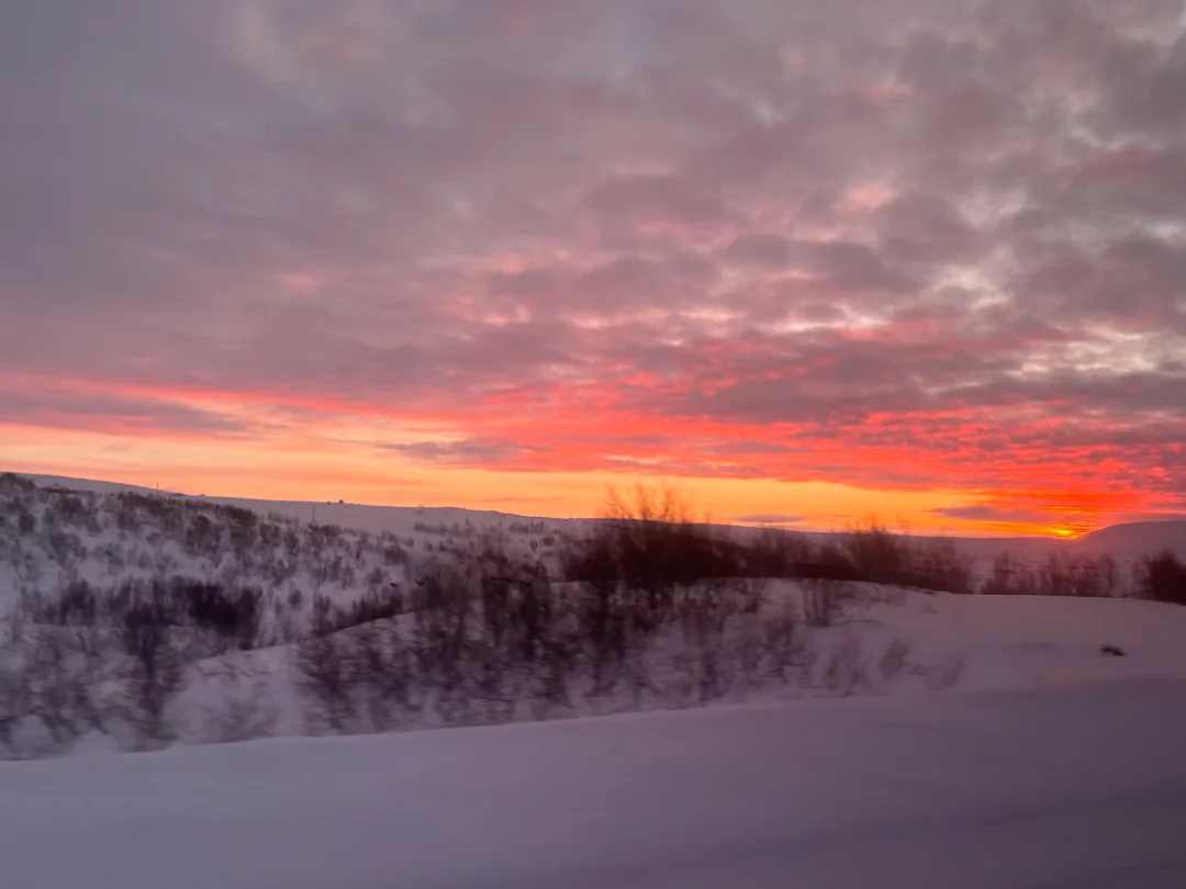 清晨十点半,从捷里别尔卡出发,本以为只是一场寻常的返程,却被北极圈的偏爱撞了个满怀~幸运的我们,竟遇见了一场难得的正午日出。