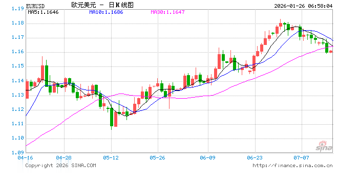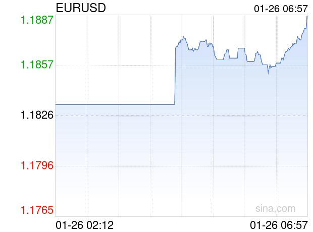 新浪外汇消息2026年01月26日,截至06时57分,外汇市场上欧元兑美元汇率突破1欧元兑换1.1887美元。涨幅为0.5158%
