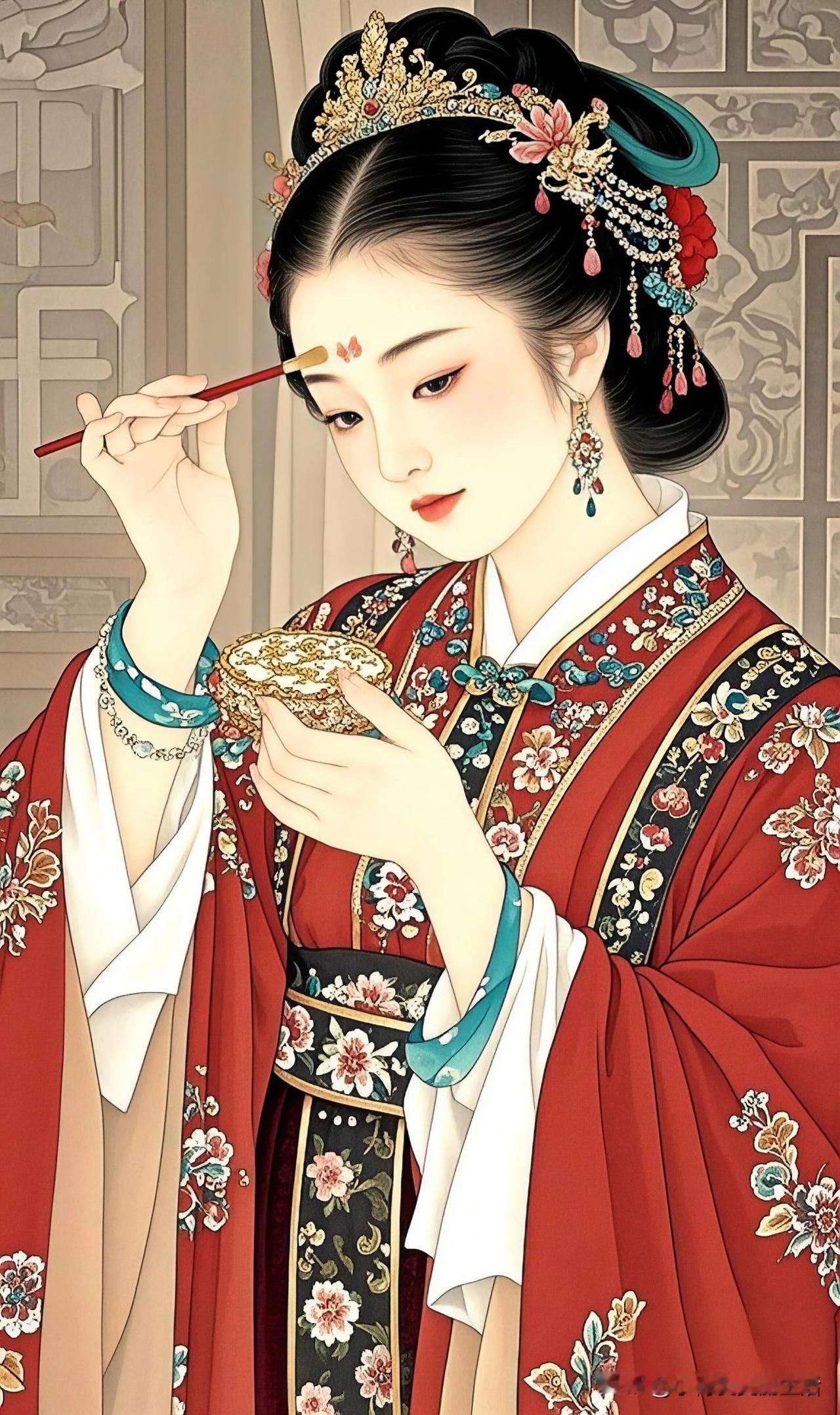 穿越千年的古典美人,红妆花钿,韵味十足!