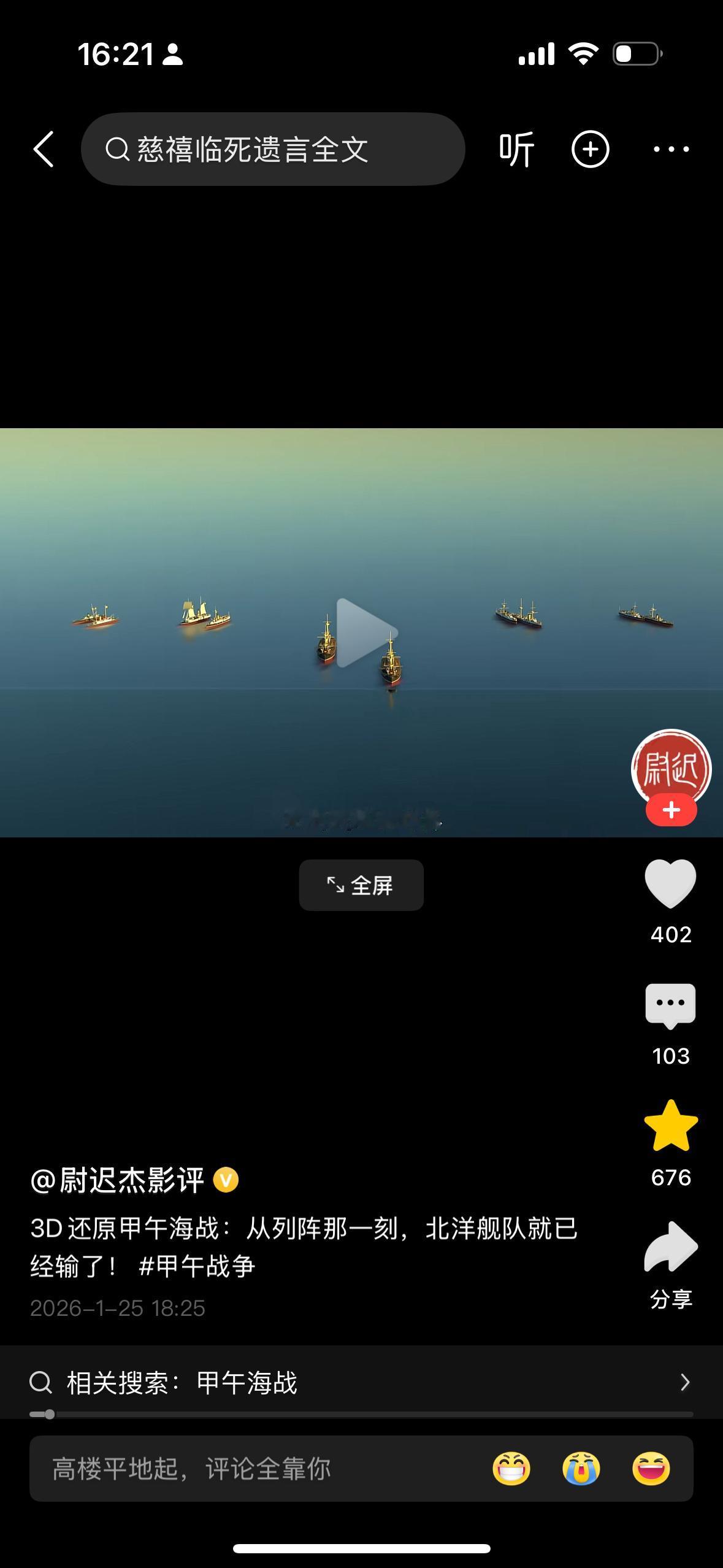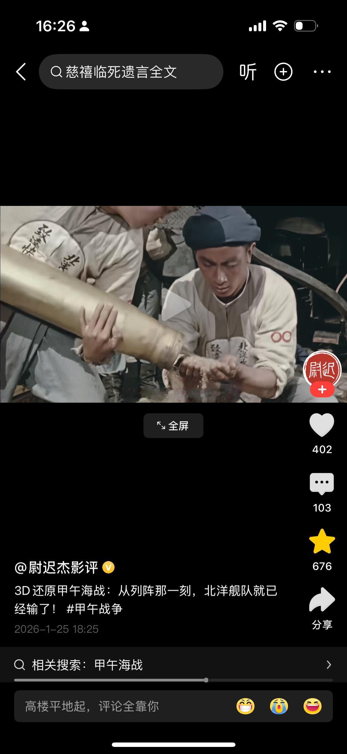 甲午战争一直是我们挥之不去的一场海战,很多历史书籍介绍都没有很清晰的介绍这场海战的全过程,今天看了一个动画模拟重现了这场海战的全过程才完全了解这场海战的真正的过程。1894年双方海军在黄海海面相距17海里时候,双方的统帅各自摆出了各自的阵形。北洋水师摆出的是欧洲最流行的海军夹缝雁行阵,这个阵法在欧洲海战也是取得实战胜利的阵法。这种战阵是两两军舰成45度为一组,所有军舰排成人字形,日本人则排出的是一字长蛇阵。本来北洋水师是占据有利阵型的,只要北洋水师直接冲击一字长蛇阵的中央日本舰队就会崩溃,而且定远和镇远的设计是具备这种撞击能力的。问题是丁汝昌犯了一个致命的错误,因为有两军舰超越超勇的航速只有七节。所以为了照顾这两军舰丁汝昌把全队的航速控制在八节,由于速度原因造成的不能够利用阵形击溃日本舰队。第二个致命问题,就是我们的火药是黑火药燃烧时间短,不会爆炸所以虽然北洋水师的命中率达到了80%,但是都没有击沉日本的军舰。很多历史片说清朝政府腐败买的弹药里面装的是沙子,这完全是胡扯。因为当年是靠实心炮弹打穿敌舰造成漏水致使敌方舰船沉没。第三个问题就是速射炮的问题。北洋建军的时候并没有速射炮这种东西,日本人建海军时用上了这种炮,这种炮30秒能够打10发威力是小一点。而我们的定远10分钟才能打一发炮弹。从最终的战果来说,我感觉北洋水师并没有输。因为我们是大国有经济能力我们可以随时补充这些军舰,而日本是小国,他们的经济能力是跟不上这种军事的消耗。问题是后来李鸿章这货被这场战役吓破了胆,为了保船而不敢出战,让北洋水师龟缩在港口不敢出战造成的北洋水师最后的全军覆没。所以真正的历史罪人就是李鸿章…..