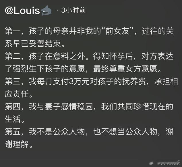 陈雪凝老公承认有个孩子 近日,《你的酒馆对我打了烊》原唱陈雪凝官宣结婚,随后有网友扒出她的老公疑似出轨。25日晚,陈雪凝晒与老公看BLACKPINK演唱会的合照,没有回应此事。今日,又有网友曝陈雪凝老公有孩子,陈雪凝老公发文承认,孩子的母亲并非“前女友”,过往的关系早已妥善结束,现在与妻子感情稳固。