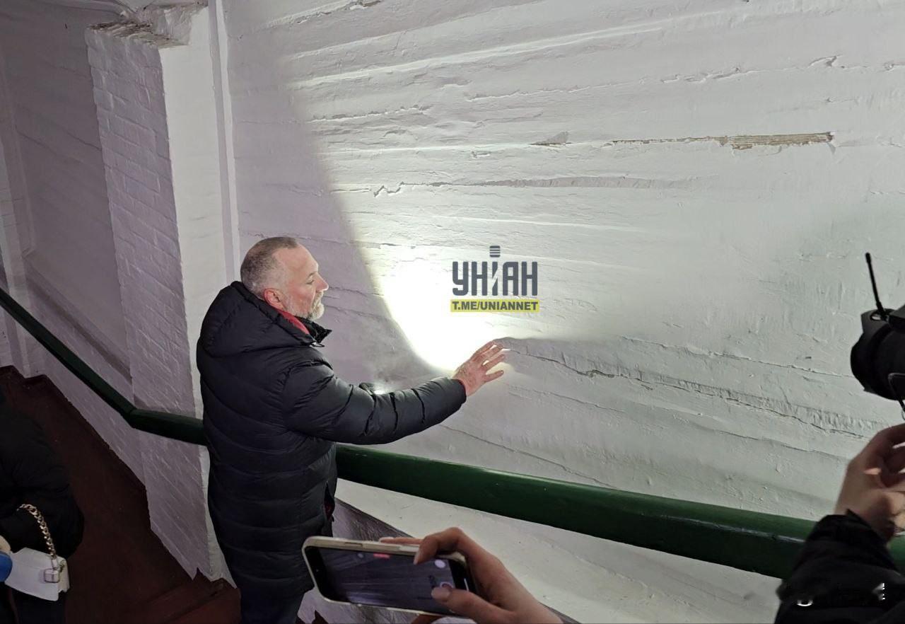 【俄方无人机袭击基辅佩乔尔斯克修道院】 1月26日,基辅佩乔尔斯克修道院保护区总经理马克西姆·奥斯塔片科向记者展示了通往修道院洞穴区域走廊在24日俄军无人机袭击中的受损情况:冲击波致使窗户与门帘飞脱,走廊墙面出现多处裂缝。 奥斯塔片科指出,这是自二战以来基辅佩乔尔斯克修道院相关建筑首次遭袭受损。