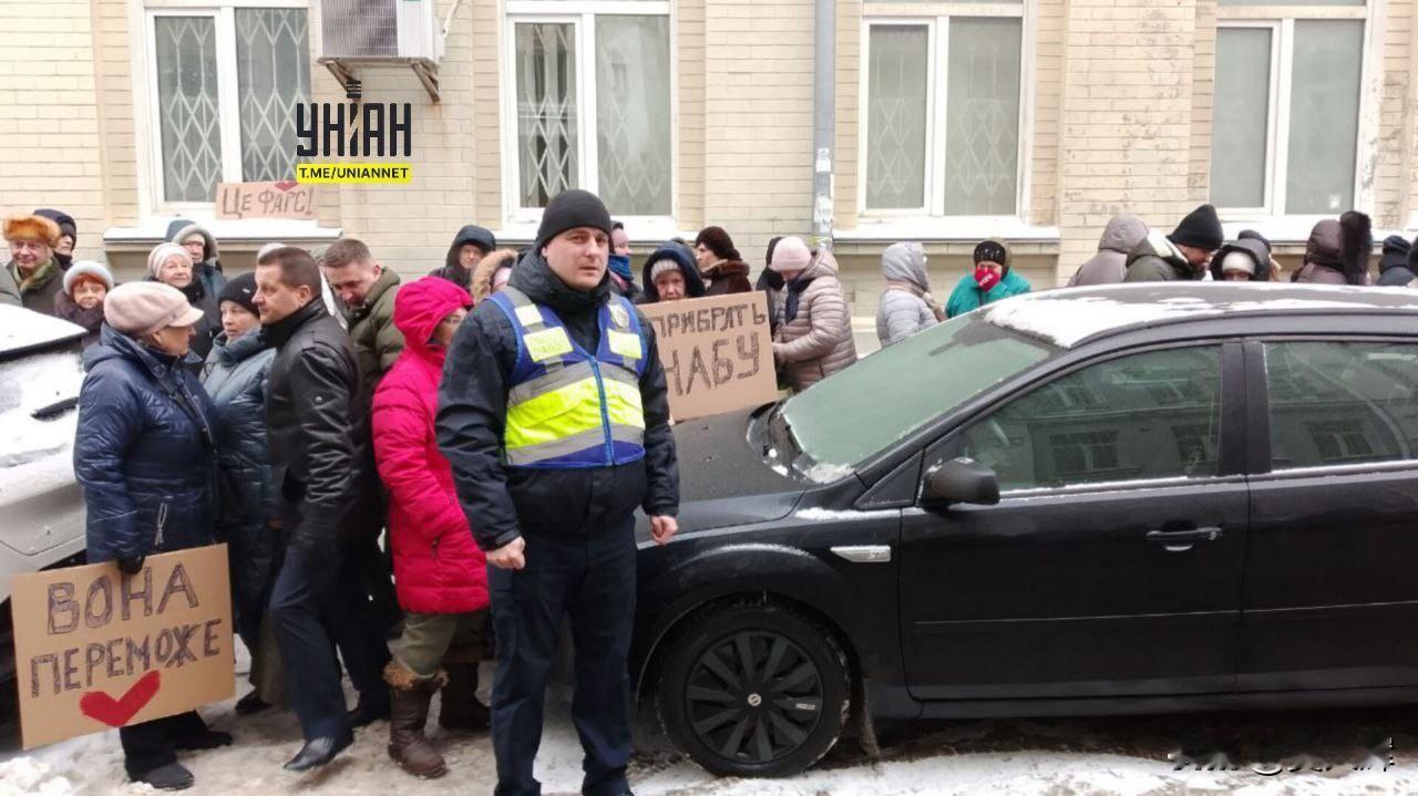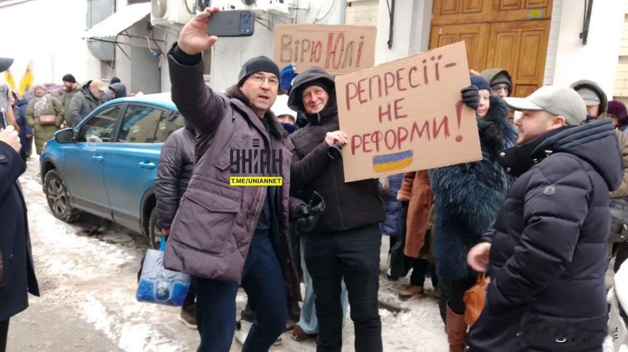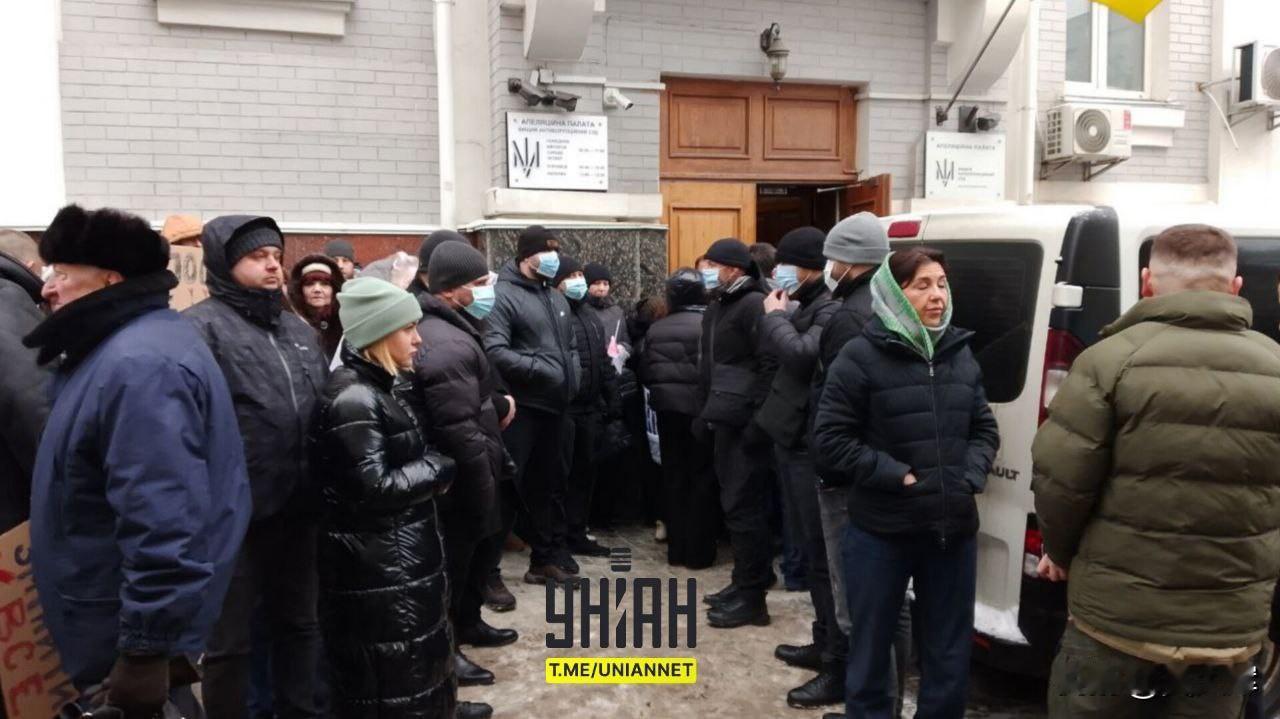 【“季莫申科--人民的心声”】乌克兰部分季莫申科支持者在对其庭审的法院外举行示威,抗议泽连斯基当局对其“政治迫害”。