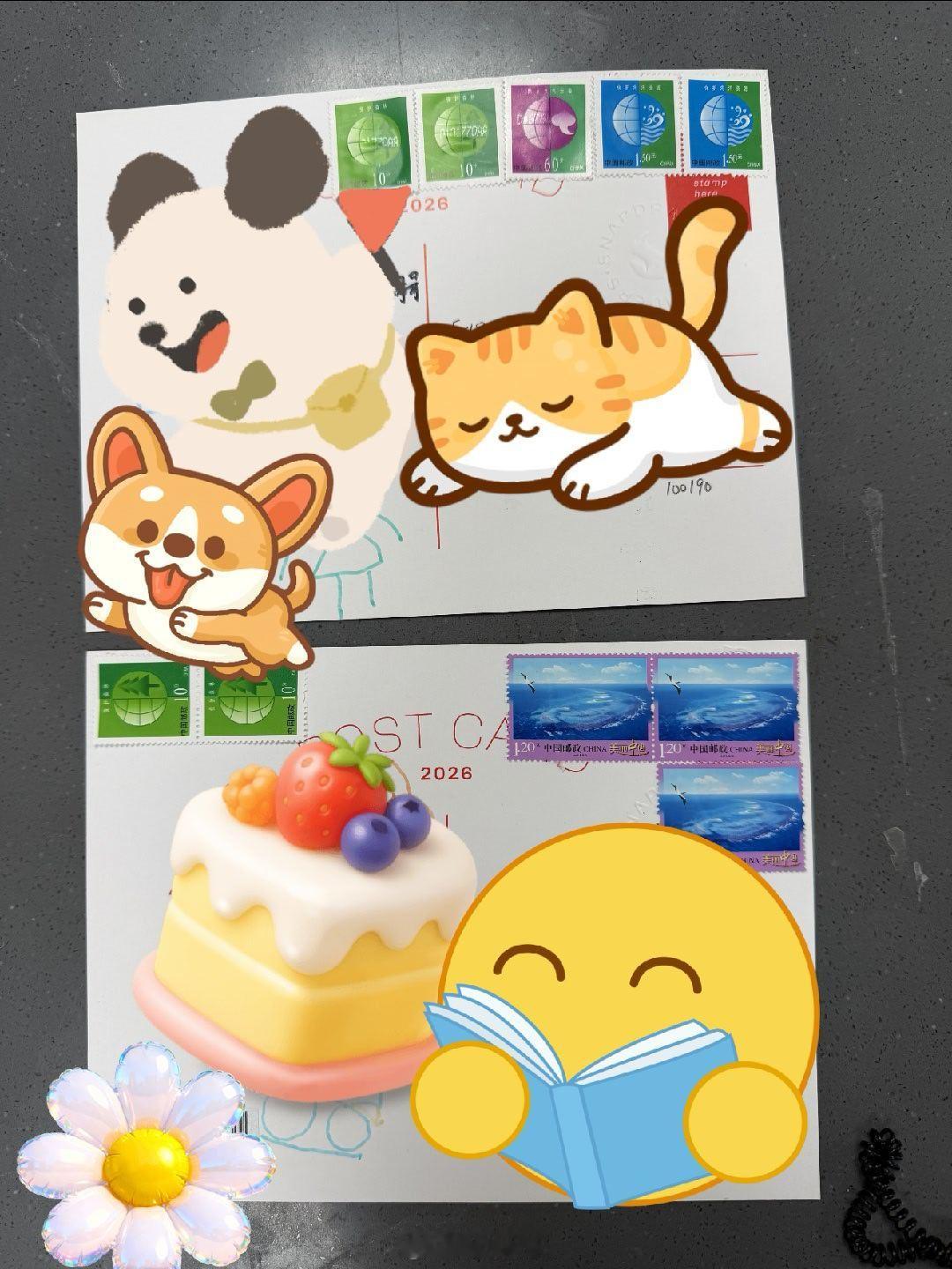 我收到一套骁龙拾光 日历还有明信片,现在的小孩都不知道邮票是什么样了!今天特意陪孩子去邮局买了邮票,贴上后寄给了远方亲人,希望骁龙的新年祝福能早日传达