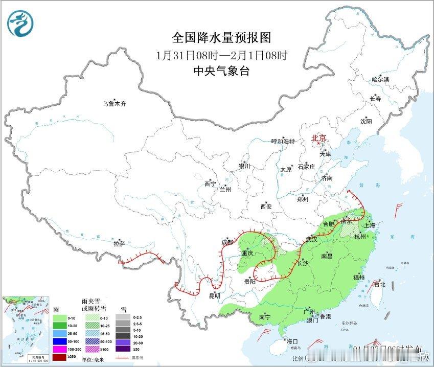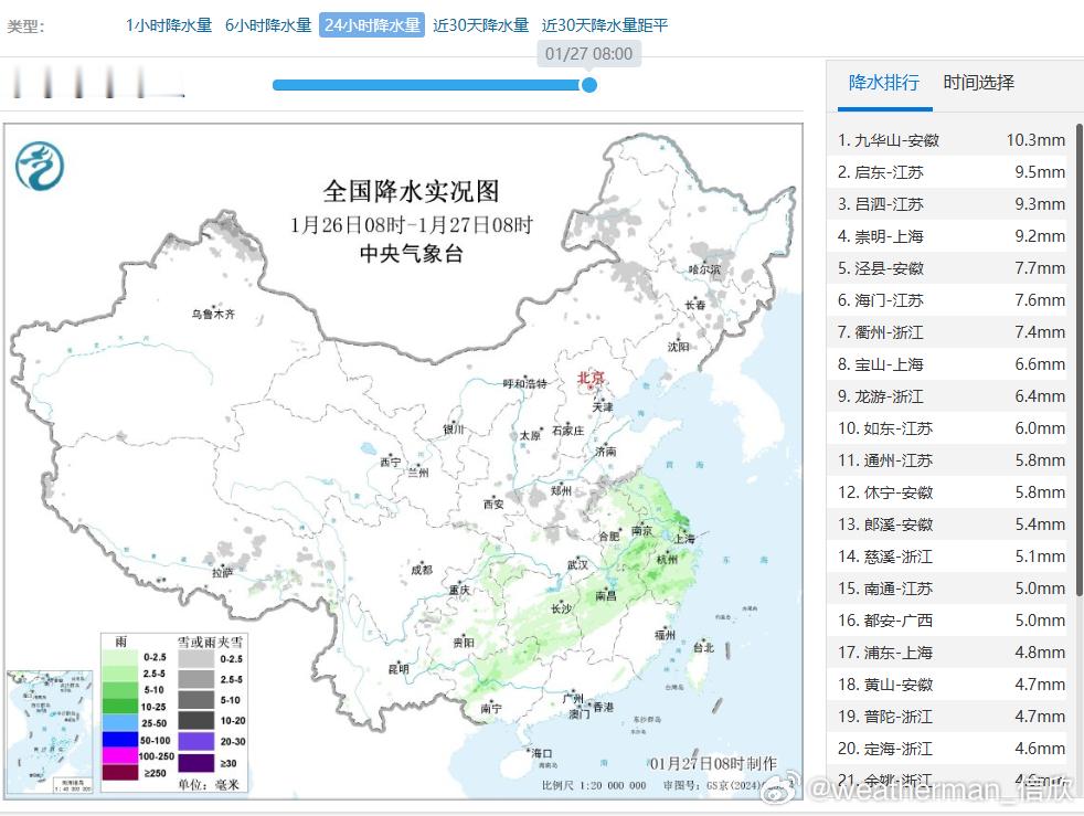 【降水】昨天到今晨,降雨向东向南推进,从广西北部到江浙沪多地出现小雨。今天降雨继