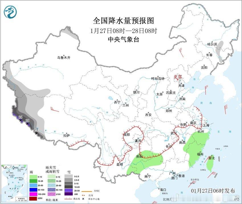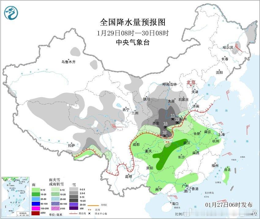 【降水】昨天到今晨,降雨向东向南推进,从广西北部到江浙沪多地出现小雨。今天降雨继续向东南推进,总体减弱。今明因为西侧上游的高空槽东移,新疆西南部和西藏西南部降雪发展增多,其中西藏西部和南部等地迎风坡有暴雪到大暴雪,局地特大暴雪(30~35毫米)。导致西藏强降雪的高空槽后期继续东移,29-31日中东部地区也有大范围降水。其中29日08时-30日08时,陕西中南部、山西南部、河南中西部、湖北西部等地部分地区有大到暴雪(10~13毫米)。30日晨,上述地区均可能出现积雪,影响交通出行。而对于浙江福建江西广东,降雨的到来可以略微缓和气象干旱。