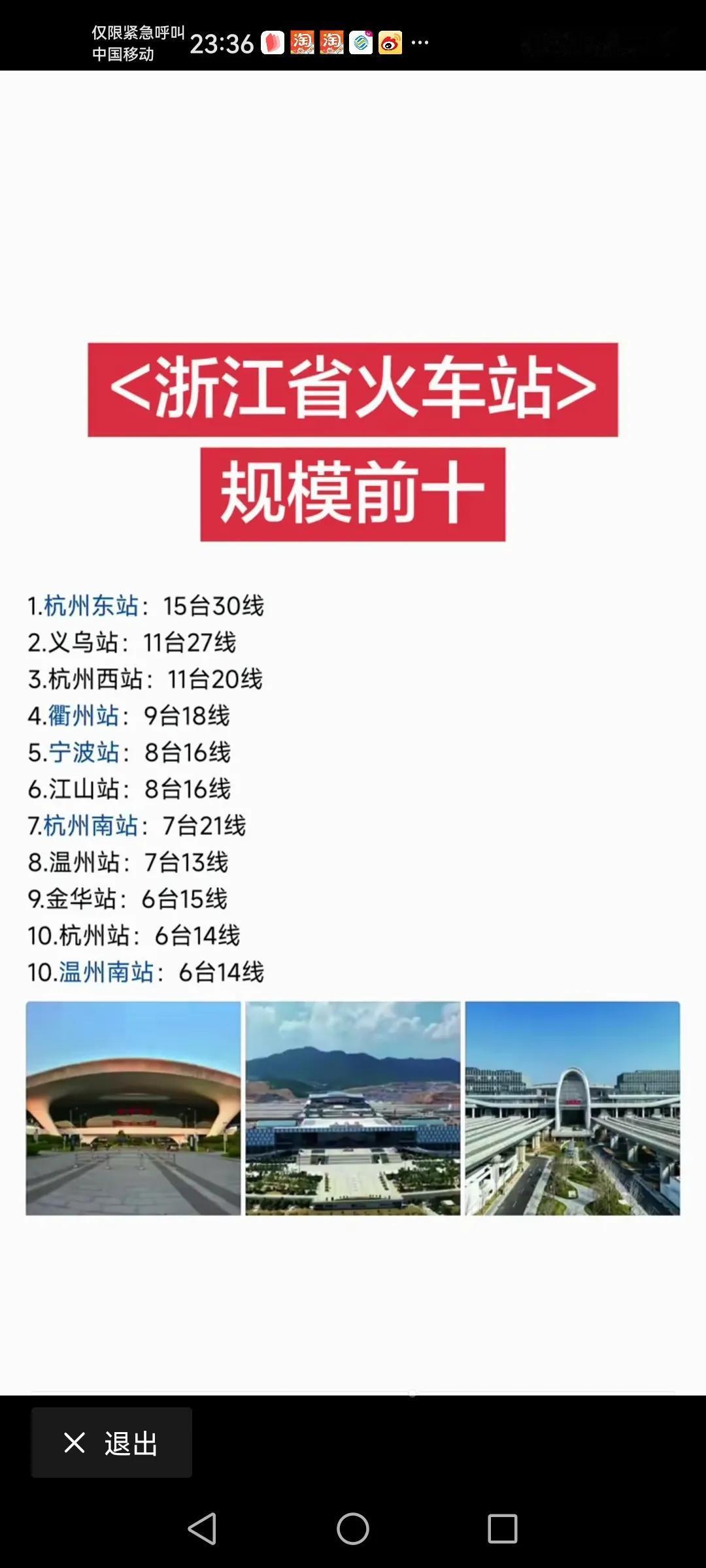 浙江规模排前十的火车站 第二名的不是下面的宁波温州等 而且还是一个县级市里的火车