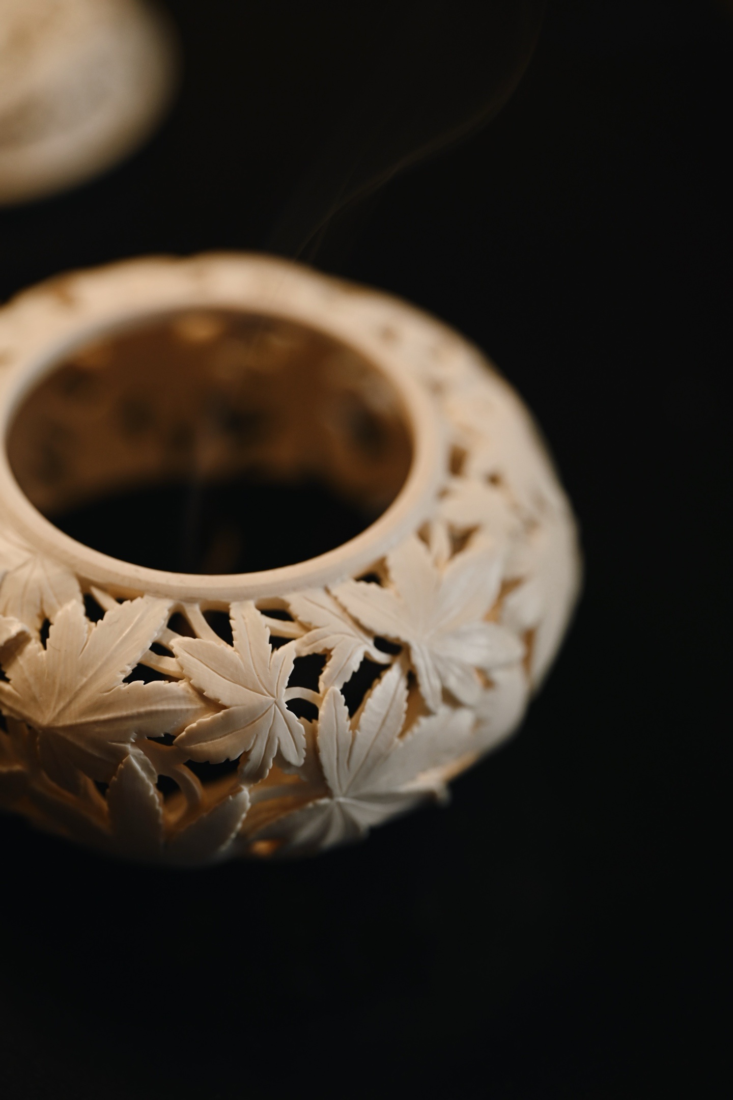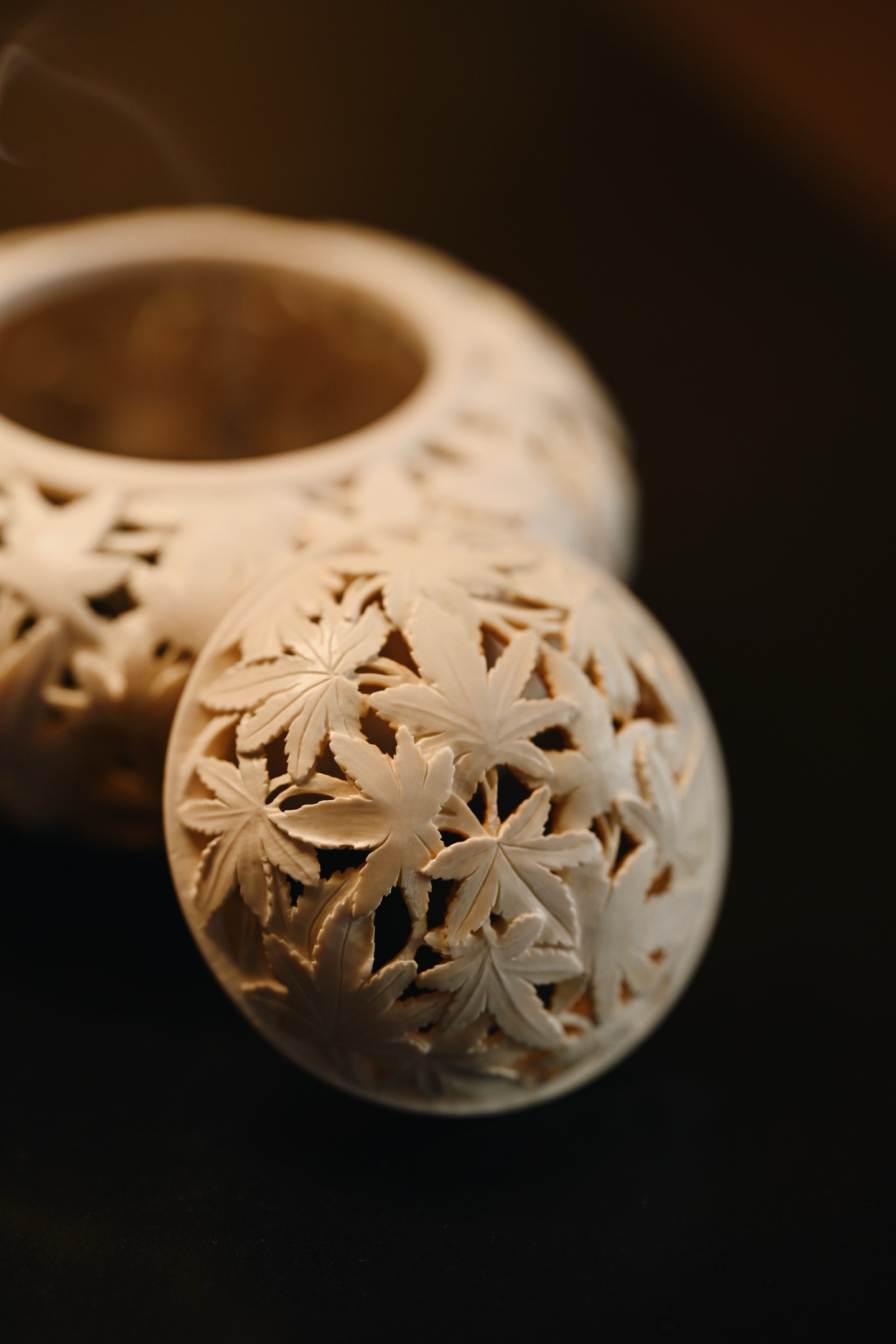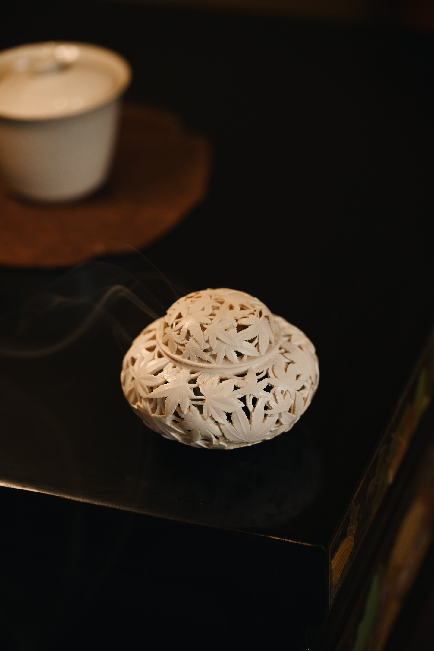 猛犸 | 清枫如诗 香炉整料镂空雕刻,工艺细腻精致,枫叶层层叠叠,姿态轻盈飘逸,
