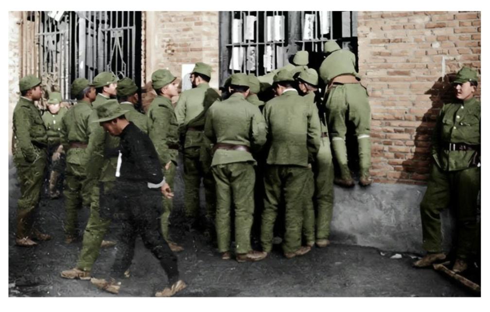 老照片,记录历史瞬间这张照片,看了半天没看懂。照片上鬼子兽兵挤在一个窗口,而照片