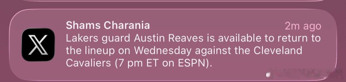 雷迪克表示,在里夫斯回归(最早可能在对阵骑士的比赛中复出)之前,湖人将维持现有的