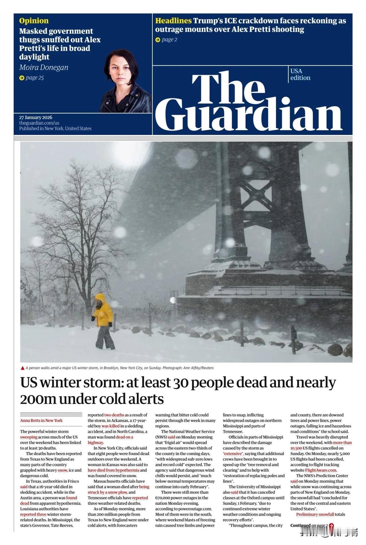 一场席卷美国大部分地区的冬季风暴已造成至少30人死亡,纽约至少有 8 人被发现死于户外。