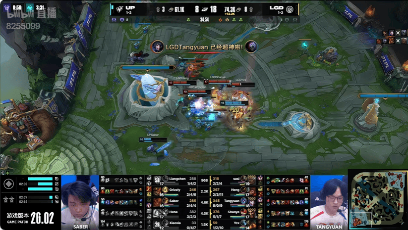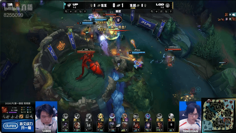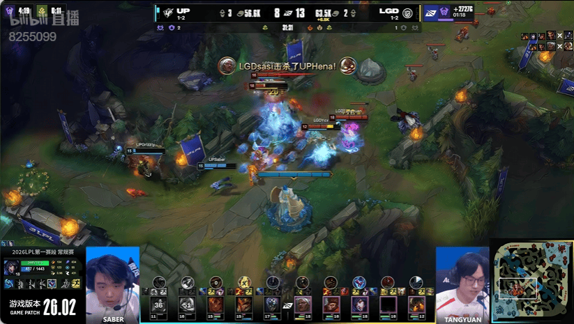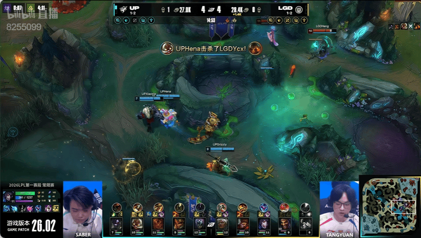 虎扑01月28日讯UP蓝色方,LGD红色方