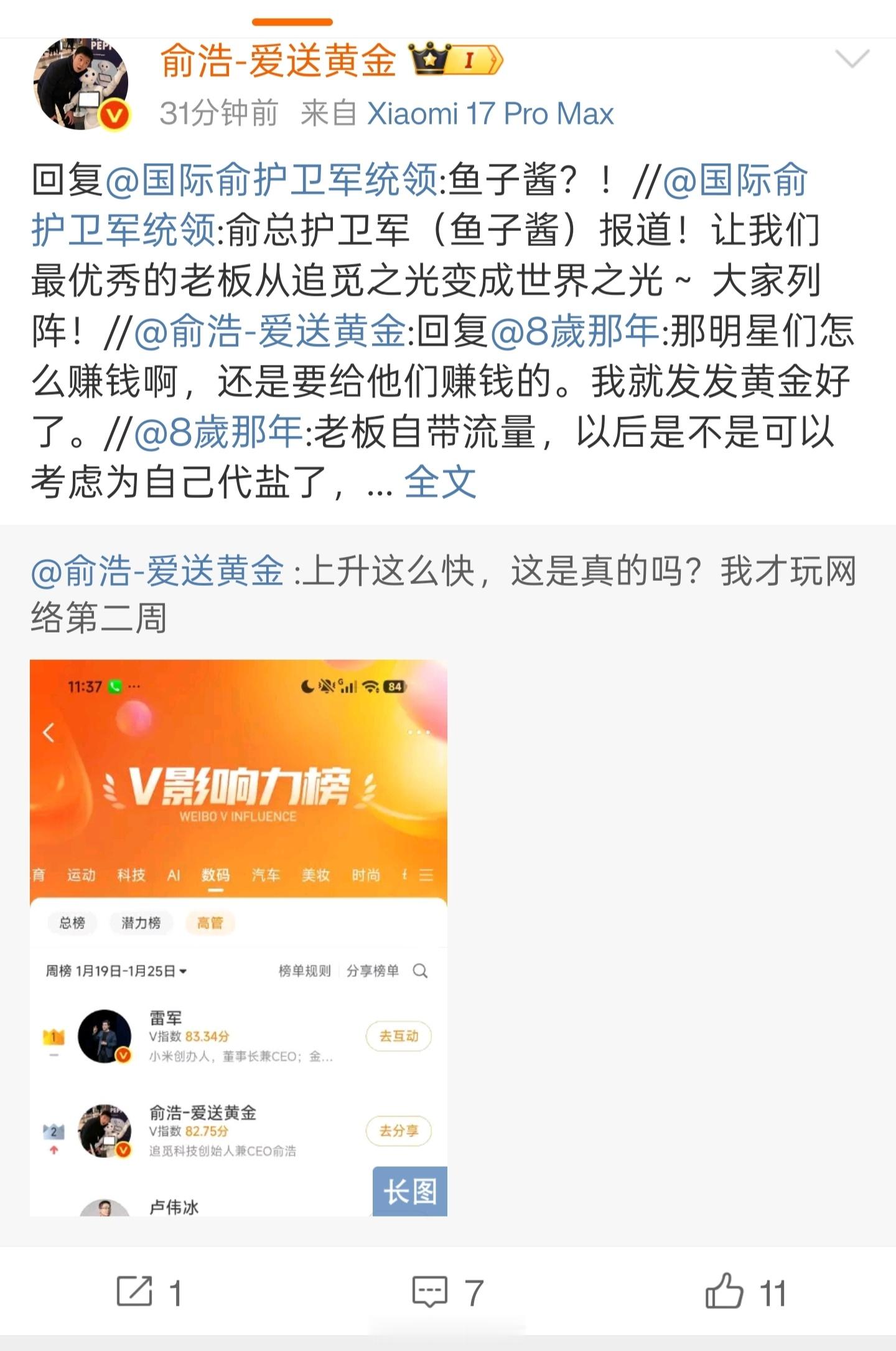 追觅被指质量售后双失守今上午刚刷到追觅CEO俞浩庆贺自己上到高管热榜第二,还说不