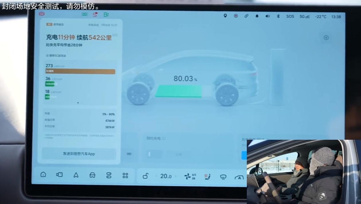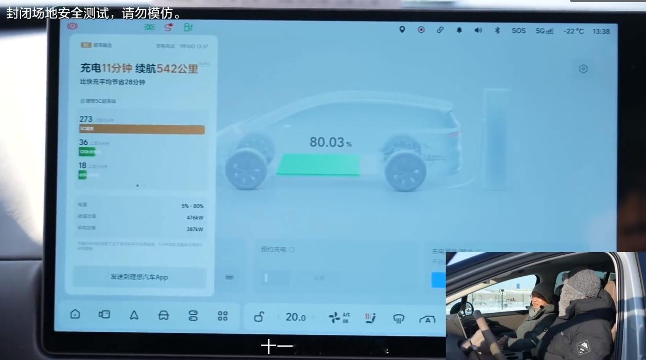 在-30℃的牙克石充电,理想汽车补能速度依然这么快,确实让人放心。在北方开纯电车的小伙伴应该会遇到,因为天气太冷,影响续航或者补能速度的情况出现。理想汽车在续航方面的优势在于,5C超充在常温或者严寒的环境下,始终如一,11分钟续航增加542公里,并且平均功率也已经接近400千瓦,厉害理想i8理想i6