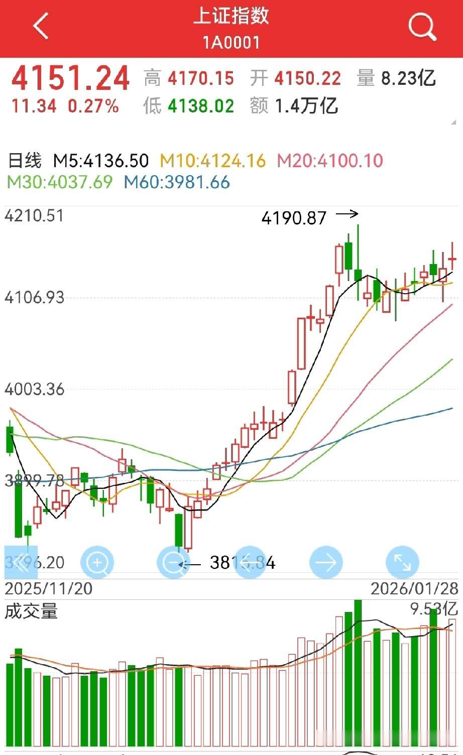 恒指突破,大A呢? 周三,恒生指数大涨2.58%,而大A,还在循环近几天的走势… 周三的大A,从分时图看(下图2),还是在延续近期一贯的走势,不许涨也不许跌。[捂脸][捂脸] 反观恒指(下图1),周三已经一举新高,大涨2.58%,气势已经出来了。 个人认为,随着元月即将结束,春节临近,题材股的调整到位,包括成交量的活跃,甚至,稳字当头,实际上也已经托底! 所以,向上突破,是自然而然的事! 不然,有色唱独角戏高位吸金,大盘死水一潭,并不是好事。 三个交易日内吧,坐等变盘。