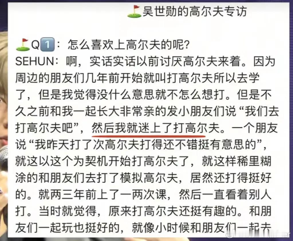吴世勋柳贤珠恋情泡菜鱼上高尔夫的综艺有说过吴世勋打高尔夫最好,嘿嘿,这不就都对上了吗。