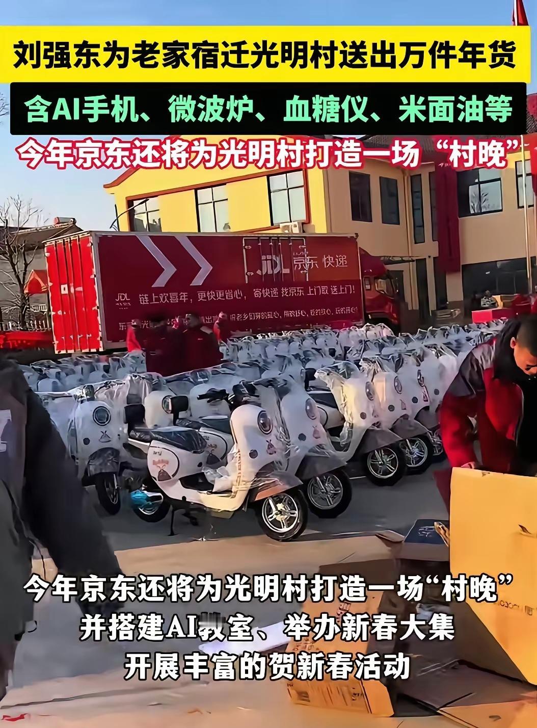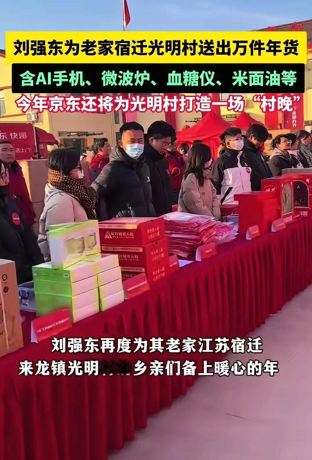 看新闻说刘强东又给老家的父老乡亲送年货,办村晚,还送钞票。村里出个富豪,全村都有