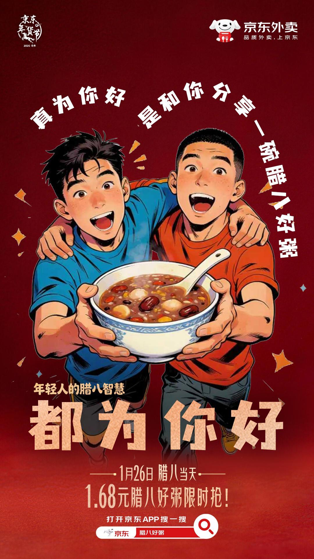 腊八的“智慧”,被这届年轻人熬进粥里了!万能四字平息所有问题,每一句都是我们热气腾腾的生活态度。给自己点碗年轻人的腊八粥,生活的仪式感,从好好吃饭开始。今天腊八不能将就,一定要打开京东APP,搜索“腊八好粥”或戳 网页链接 ,腊八喝好粥,1.68元腊八好粥限时抢,每个整点都有好粥品,近百款腊八好粥,一件就免运!花小钱拥有大快乐,腊八的氛围都在这里啦!腊八喝好粥就上京东外卖 京东外卖 京东腊八 腊八好粥 年轻人的腊八粥 一代人有一代人的腊八粥 热粥暖身红运满程 腊八 腊八粥