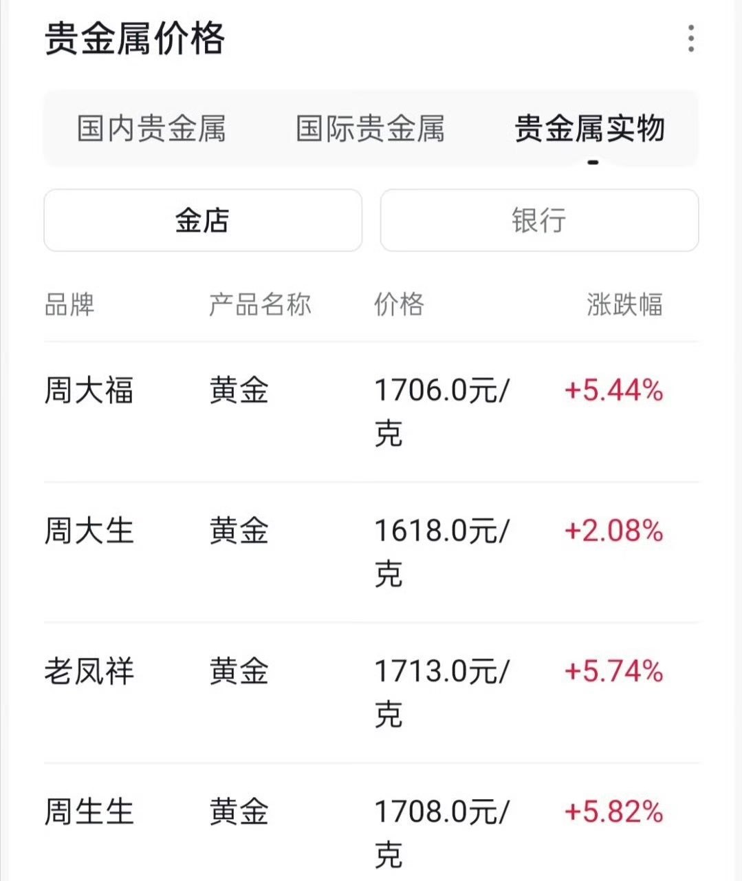 你说:“金价涨到1700元一克,我没啥概念。”但是你要这样说:“我牛马一个月,都挣不到3克金子…”金饰克价涨至1708元