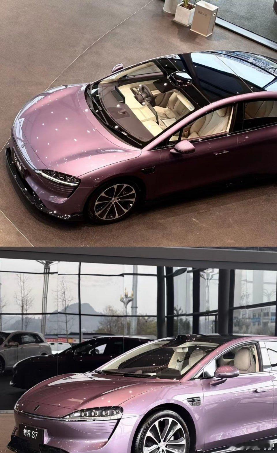 运动轿跑智界S7太会拿捏颜值!流畅造型自带吸睛buff,镜头里随手拍都是大片,再配上紫调双拼内饰,精致感直接拉满,越看越心动大v聊车