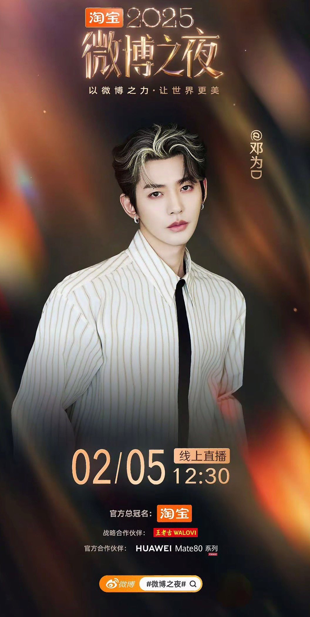 微博之夜第三波阵容邓为第二次登微博之夜了,真的超期待他的新造型!之前看他演的剧 演技 颜值都戳我有没有和我一样坐等惊艳的宝子?