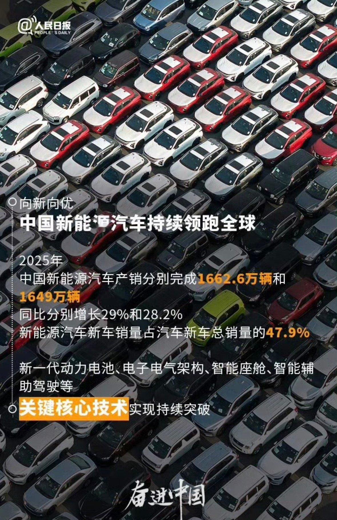 看新能源汽车这数据!新车占比近48%,合资都扎堆推新出口261.5万辆还在海外硬刚咱国货这实力真厉害👍中国新能源汽车持续领跑全球