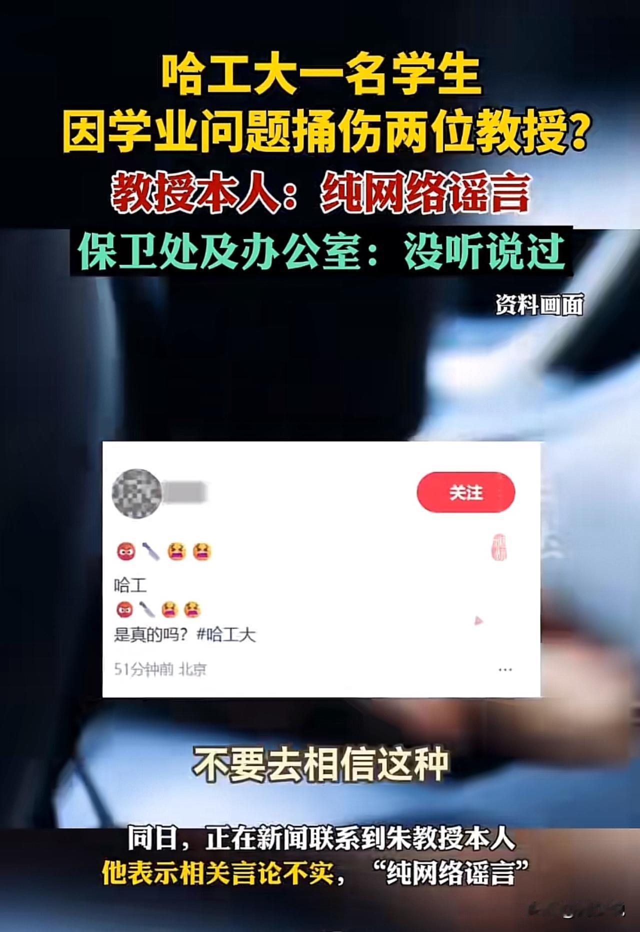 这些键盘侠太可恶了,竟然造谣哈尔滨工业大学一名学生因为学业问题捅伤两名教授,引发全网关注和热议。结果,没多久教授本人就出来辟谣了,直言“纯网络谣言”,啪啪打脸造谣者。 说实话,现在有些键盘侠真的无耻,造谣一张嘴,辟谣跑断腿。能考入哈尔滨工业大学的,基本都是佼佼者了,只要在校正常学习,学业问题基本不大,更不大可能做出这种鲁莽的行为…..#寻美三湘# #长沙新朋友#