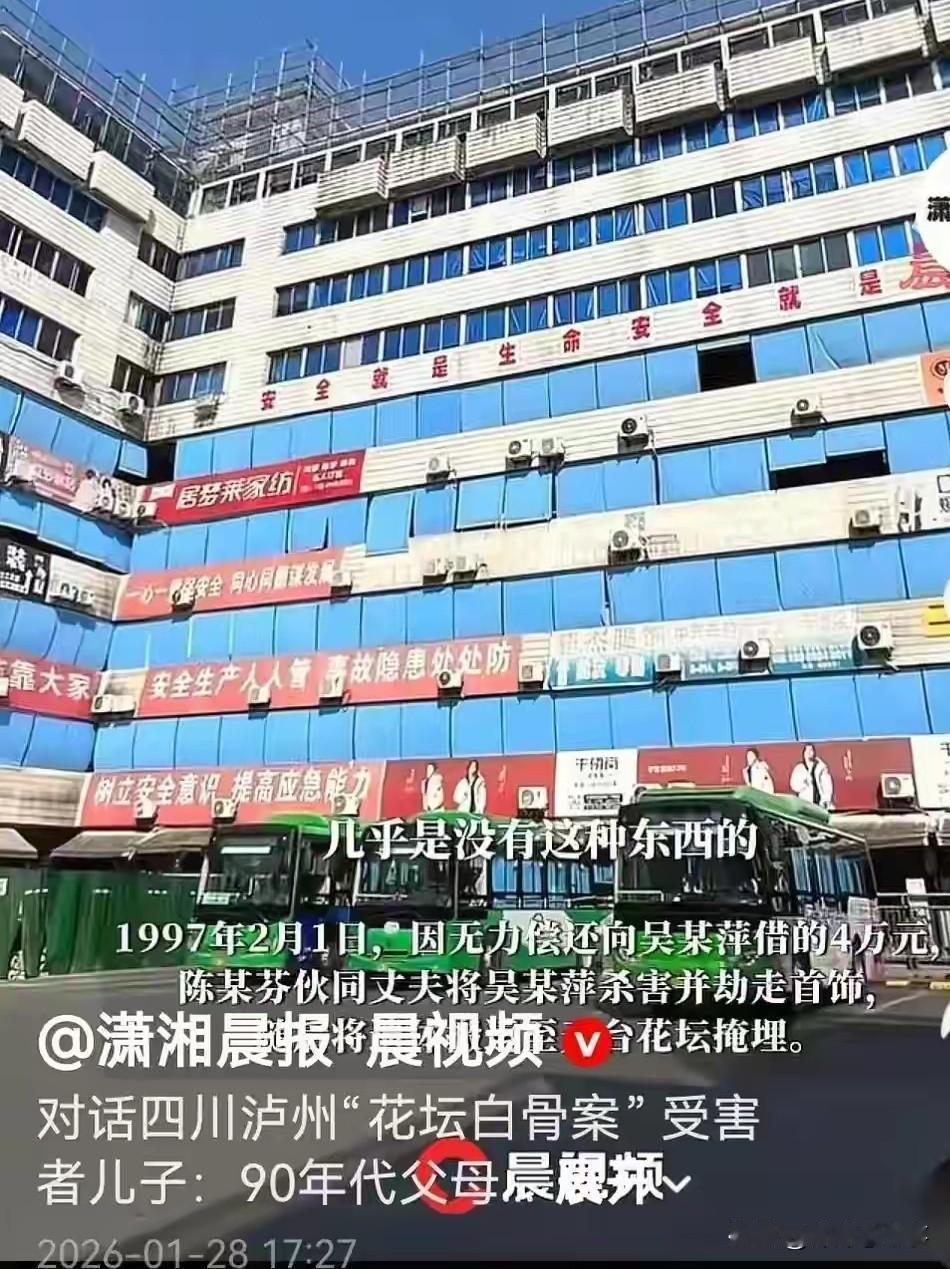 不可思议!四川泸州那座老商场的楼顶,拆花坛的工人一镐头下去,碰到了硬东西。谁也想不到,这一米长的小花坛里,埋着一个女人28年的冤屈,和一个孩子半辈子的等待。 1997年的吴某萍,是泸州商场里的"羊毛衫女王"。从摆摊到开批发店,七年攒下百万身家,半人高的抽屉里塞满现金,在那会儿,比现在的千万富豪还稀罕。离婚后带着8岁儿子过活,日子红火得很,谁见了都夸一句"能干"。 就是这个能干的女人,心也软。同商场的陈某芬生意亏了,张口借4万,她没打借条没犹豫,直接从钱堆里数了出来。她以为是帮朋友渡难关,哪知道是把自己推进了鬼门关。 那天晚上,儿子记得清楚,妈妈说"去收个钱就回",摸了摸他的头就出了门。这一去,再没回来。 陈某芬说"钱还了,人走了",警方查不到踪迹,只能按失踪案挂着。8岁的孩子不懂"失踪"是什么,只知道妈妈不见了。他天天跑到服装店门口蹲守,商户们给口饭就啃,亲戚接回家又跑回来,就盼着妈妈从哪个拐角冒出来,笑着喊他名字。这一等,就是两年,从孩童盼成了少年,心里那点念想,慢慢变成了"妈妈是不是不要我了"的刺。 而他心心念念的妈妈,就躺在他天天转悠的商场楼顶。陈某芬夫妇杀了人,趁着夜色把尸体塞进花坛,土一盖,以为天衣无缝。紧接着,他们搬去上海,改了户口,换了身份,甚至跑到韩国整容,把脸换得连老熟人都认不出——就为了赖掉那4万块,毁掉一个家。 这28年里,吴某萍的姥姥哭瞎了眼,临终都攥着女儿的照片;儿子从少年长成男人,心里的刺越长越深,不敢提妈妈,却总在梦里见到那个摸他头的背影。而陈某芬夫妇,用沾血的钱过着安稳日子,大概早忘了花坛里的秘密。 直到2025年6月,花坛拆了,白骨露了出来。衣物碎片、骸骨鉴定、DNA比对,真相像手术刀一样划开尘封的谎言。警方找上门时,陈某芬还想装糊涂,说"买了机票回去解释",可丈夫先扛不住,全招了——就因为还不起4万,就因为看她离异带娃好欺负,就下了狠手。 法庭还没判,但谁都清楚,这对夫妇欠的不止是一条命。他们欠那个孩子一个拥抱,欠那个姥姥一句告别,欠吴某萍一场本该继续的人生。陈某芬后来哭着说"对不起",可这三个字,哪抵得过28年的骨肉分离?哪配得上那句"朋友"? 现在想想,1997年的4万块,买不来人心,却能照出人心。吴某萍的好心没做错,错的是把恶念当算盘的人。这花坛里的白骨,不止是一桩命案的证物,更是给所有人的提醒:善良得带点锋芒,帮人得留点心眼。 只是可惜了吴某萍,她到死都想不到,自己伸手拉的一把,竟成了把自己推入深渊的手。而那个等了28年的儿子,终于等到了真相,却永远等不回那个说"去收个钱就回"的妈妈了。