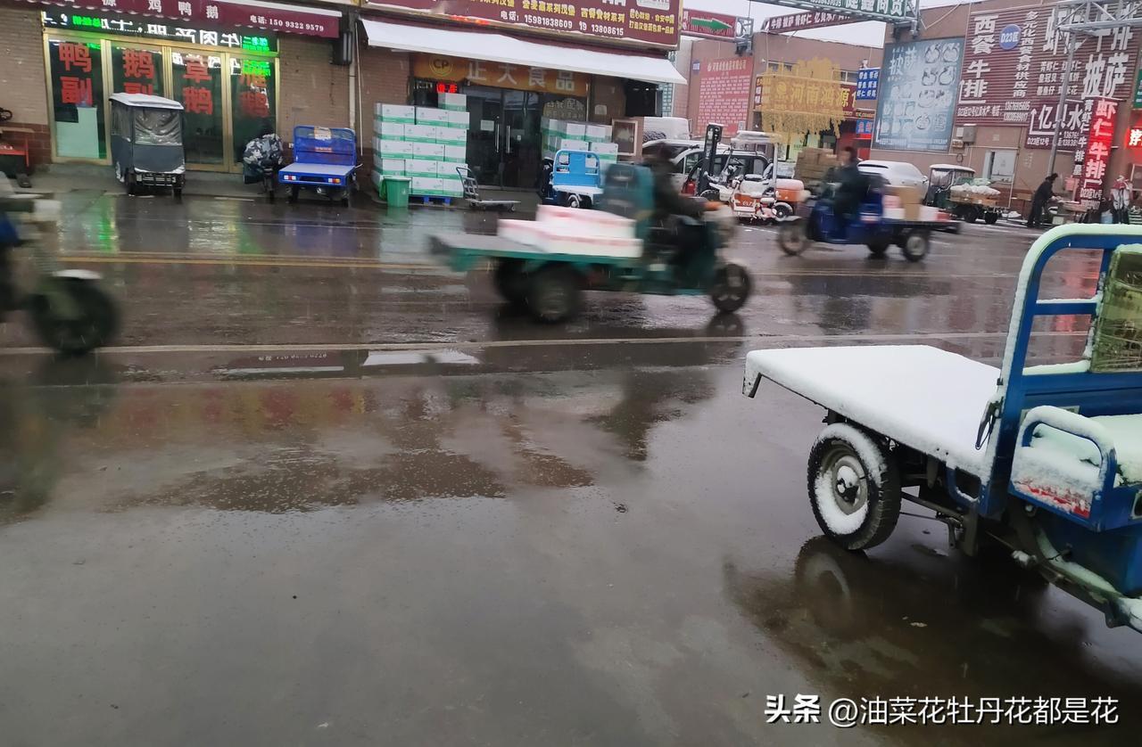 昨天下班时感觉天上在落小雪花,我不确定的看看天气预报,没有雨雪预报呀。再抬头看看天,确实有稀疏的小雪花在风中飞舞。 待取了快递回家,雪花已下得密了,在灯光下如柳絮飞舞。天气预报里有了小雪25分钟后渐停的提示,但明天七点至八点还有小雪。 老家漯河的家校群里,老师也发了雨雪天安全提醒。 今早六点多起床,发现小阳台种的蔬菜都被雪覆盖了,天上还飘着昨晚那样的小雪,小雪落地就化了,路面上一层亮亮的雪水。万邦市场照样忙碌,没有因小雪改变节奏。 这已是今年入冬来的第二场雪,虽然给出行带来了困扰,农民却是很开心的,明年的庄稼会有好收成了。 今天已是五九的第五天,俗话说“一九二九不出手,三九四九冰上走,五九六九抬头看柳”,冷过这三四天,最低气温也没有零下的了。春节回家时就可以去风景优美的沙澧河堤晒太阳,看杨柳泛青,迎春花开了。