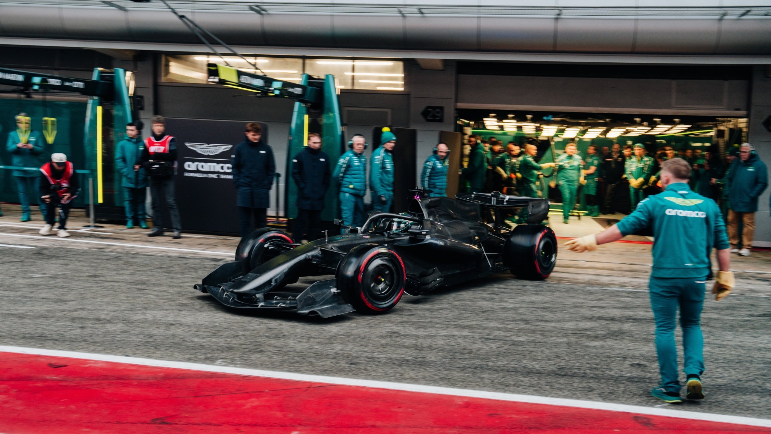阿斯顿·马丁新车AMR26在周四测试最后一小时驶上赛道!但看起来首航并不顺利……F1F1巴塞罗那试航周