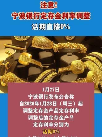宁波银行把黄金活期利率直接砍到0%!平安、招行也跟风降到0.01%,银行集体对黄金"泼冷水"了。 根本原因就两条:一是今年金价疯涨30%,银行怕散户高位接盘爆仓;二是银行自己持仓成本飙升,净息差跌穿地板,降息纯属割肉自保。 黄金早被监管定为中高风险资产!专家也喊话:别当存款玩,仓位别超10%,暴富梦该醒了。现在银行贵金属业务集体"踩刹车",零利率恐成常态。普通人听句劝:黄金有风险,跟风小心变韭菜!黄金活期 黄金存款