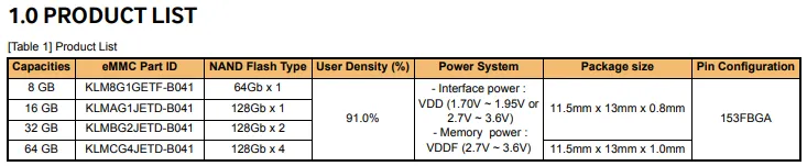 5.一直火热的eMMC「KLM8G1GETF-B041」
