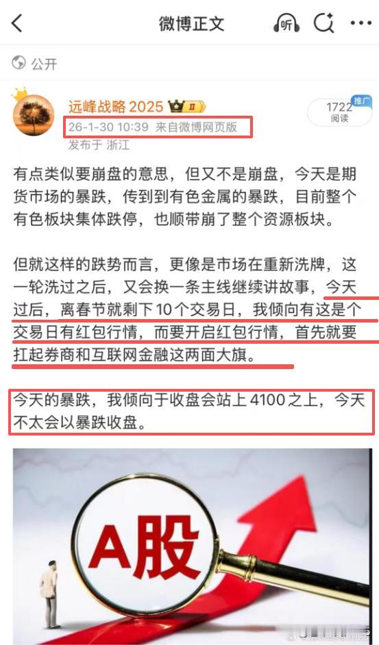 今天的大盘的惊魂一跳,我认为探底基本上已经宣告成功,今天的低点4064点,在未来很长一段时间都不会再见到了,大盘会继续在牛市周期中的上行周期轨道继续运行。 我过去说在这个阶段,即便坐个短途过山车,也比没有车坐要强,错失一个牛市的风险,远比天天担心会不会回调的风险要大的多。今天也算坐了一趟短途过山车,在周期力量的庇佑下,这种车有的坐比没得坐确实要强得多。 今天是有色的崩,顺带崩了整个资源性板块,对于有色及各种贵金属,接下来我的看法是依旧会反复,行情依旧没有走完,但接下来的每一次有色板块拉升都是都将是出逃的机会。 作为普通散户,不管接下里有色是否还有新高,都应该视有色板块的故事已经讲完了。
